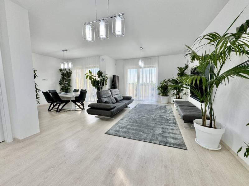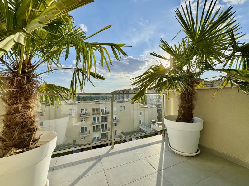 Prémium újépítésű lakás, dupla erkéllyel a XIX. kerületben. Eladó ez a minden szempontból átgondolt, legjobb minőségben kivitelezett 3 szobás lakás. (Akár visszabérléssel)Fontosabb információk: • 2024 átadás• 103m2 , 3 szoba• 15,43 m²-es terasz és egy 4,26 m²-es erkély• geotermikus fűtésrendszer, mennyezeti fűtés és hűtés• padlófűtés az előtérben, wc és fürdőszobában• okos-otthon teljesen kiépítve, lentebb részletezve• magas minőségű nyílászárók• szívesen visszabérelné a tulajdonos• tehermentes tulajdoni lap.A hirdetett ár tartalmazza:• teljes mesh WiFi rendszer;• pezsgőfürdő funkcióval és színterápiával ellátott fürdőkád;• okos konnektorok és kapcsolók;• szőnyegek és függönyök;• tartalék burkolatok: csempe, padlócsempe, vízálló padlóOkos-otthon rendszer lehetővé teszi az alábbi funkciók távoli, mobiltelefonos vezérlését is:• beépített riasztórendszer;• fűtés és hűtés;• állítható fényerejű LED világítás;• elektromos, motoros redőnyök;• okos kilinccsel felszerelt bejárati ajtó;• főzőlap, sütő, mosogatógép, mosógép és szárítógép.Emellett a rendszer jelzéseket küld a mobiltelefonra behatolás, vízszivárgás vagy füstérzékelés esetén.Kérdés, vagy egyéb információ esetén keressen bizalommal!