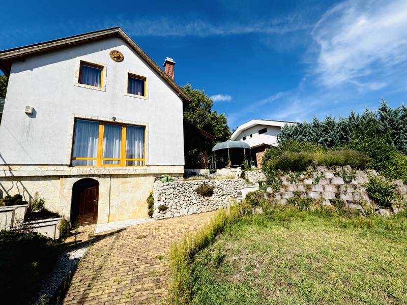 Képzelje el, hogy minden reggel a természet ölelésében, a város zaja felett ébred, miközben körülöleli a budaörsi hegyek látványa. Ez a birtok nem csupán egy ingatlan – egy élettér, ahol a nyugalom és a modern luxus találkozik.A főépület – a nagyvonalú családi otthon (485 m²)Egy különleges, Dr. Kuba Gellért által tervezett, ökologikus villa, amelyet úgy álmodtak meg, hogy hosszú távon kényelmet, fenntarthatóságot és eleganciát nyújtson.Kikapcsolódás itthon: belső medence és szauna gondoskodik a pihenésről.Energiatudatos megoldások:napkollektor, frisslevegő-ellátás, gravitációs légfűtés – mindez alacsony rezsit és tiszta levegőt biztosít.Tágas terek, fényárban: a hatalmas nappaliban a kandalló melege és a körpanoráma egyszerre varázsolja otthonossá az estéket.Privát szféra: 5 különálló hálószoba, mind saját fürdőszobával és gardróbbal.Autók szerelmeseinek: 4-5 férőhelyes teremgarázs, fordítókoronggal a könnyed kiállásért.A vendégház – egy kis külön világ (100 m²)A birtok része egy barátságos, önálló vendégház is, amely ideális szülők, felnőtt gyermekek vagy vendégek számára.* Világos, amerikai konyhás nappali* Kényelmes hálószoba és fürdő* Panorámás terasz nyári konyhával – tökéletes hely baráti összejövetelekhez. Miért különleges ez a birtok?* Mert itt valóban két házat kap egy áráért – többgenerációs együttélésre, vendégháznak vagy akár munkára is ideális.* Mert a tervezés és a kivitelezés során a környezettudatosság és az egészséges élettér volt az elsődleges szempont.* Mert a csend, a panoráma és a természetközelség olyan életminőséget kínál, amit kevés budapesti környéki ingatlan tud nyújtani.Ez az otthon nem mindenkinek szól. De ha Ön értékeli az egyediséget**, a fenntartható megoldásokat, és szeretne egy saját világot magának és családjának a város szomszédságában, akkor ez az ingatlan pont Önre vár.