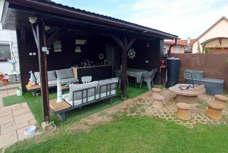 A ház tágas nappali-konyha-étkezője igazi családi élettér, a füvesített kert pedig kényelmes játék placc a gyerekeknek,ön pedig kedvére süthet-főzhet a fedett kinti konyhának köszönhetően, miközben csobban egyet a medencében!Legfontosabb paraméterek:-Fiatal szigetelt tégla építésű ház-3 szoba + nappali-konyha-étkező-Takarékos gázcirkó fűtés-Kiépített öntöző rendszer, automata fűnyíró, medence-Fedett terasz kinti konyhával és bográcsozóval-Fedett, térkövezett autóbeálló 2 gépjármű részére-TárolóTekintse meg a teljes bemutatót irodánkban, tetszés esetén a helyszínen, tegyen rá ajánlatot!A hirdetésben szereplő információk a megbízótól kapott adatok alapján készültek, pontosságukért felelősséget nem vállalunk! Az alaprajz csak tájékoztató jellegű!Amennyiben vásárláshoz hitelre is szüksége van, független hitel tanácsadónk ingyenesen tud Önnek segítséget nyújtani a legjobb konstrukciók kiválasztásában és a folyamat lebonyolításában. Irodánk kereső ügyfeleinknek teljes körű szolgáltatást nyújt, szakszerű tanácsadással, energetikai tanúsítvány elkészítésével, hitelügyintézéssel és profi ügyvédi segítséggel. Abban az esetben ha az ingatlan felkeltette érdeklődését keressen bizalommal!