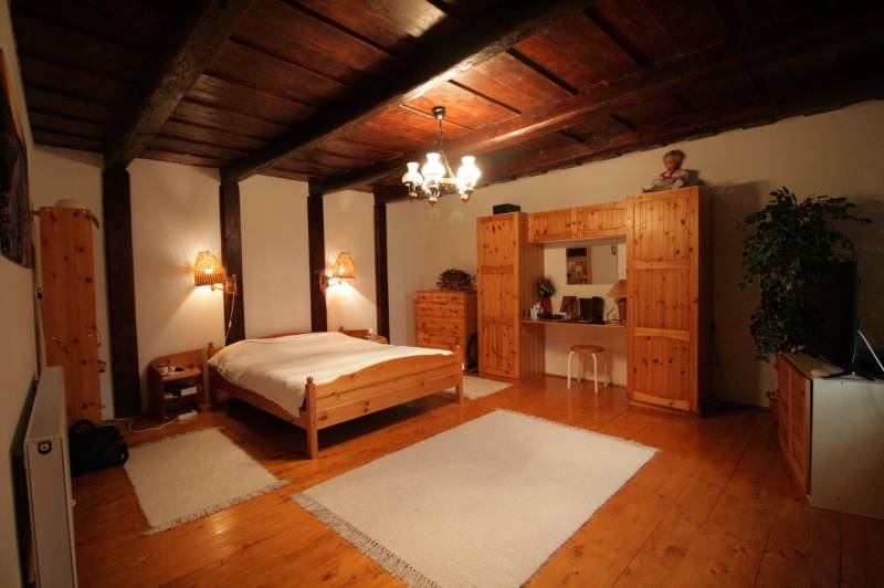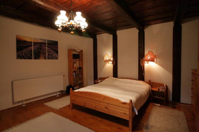 A ház eredeti hangulatát megörző felújításon átesett, 80 m2-es, 2 szobás, teljesen berendezett parasztház, 30 m2-es, déli tájolású, részben fedett terasszal és 110 m2 melléképülettel keresi szerető új gazdáját.A fő épület egy 30 m2-es utcára és udvarra néző szobából, egy 17 m2-es udvarra néző étkező-konyhából, egy 6 m2-es szomszéd telekre néző zuhanyzó-wc, mosóhelyiségből és egy udvarra néző 27 m2-es szobából áll. A telek 3208 m2-es, összközműves. Az épület körüli telekrészt helyi kertész gondozza. A telekre 3-4 gépkocsival is kényelmesen be lehet állni, plusz 2-3 gépkocsival a melléképületbe.A vastag vályog és kő falazatú épület 10 cm dryvit homlokzati hőszigetelést kapott. A lakóépület fafödémes. Belmagassága 2,5 és 2,7 m. A 110 m2-es melléképület áll egy 21 m2-es tárolóból mely borozónak is ideális, belmagassága 2,2 m. Egy 44 m2-es, poroszsüveg-boltozatú csűrből és egy 45 m2-es, külön bejáratú, egy légterű tárolóból mely több állásos garázsnak is alkalmas. Tető héjalása zsindely.A radiátoros fűtést és meleg víz ellátást 24 KW-os kombi gázcirkó biztosítja. Hő- és hangszigetelt fa ablakok, díszes spalettákkal. Fa kültéri, beltéri ajtók. Hajópadló. Fa bútorok, hangulatos dísztárgyak, lámpák, háztartási gépek, televíziók. Biztonsági szolgálatra bekötött riasztó.Az ingatlant csak irodánk kínálatában találja. Amennyiben felkeltettem érdeklődését, hívjon bizalommal!