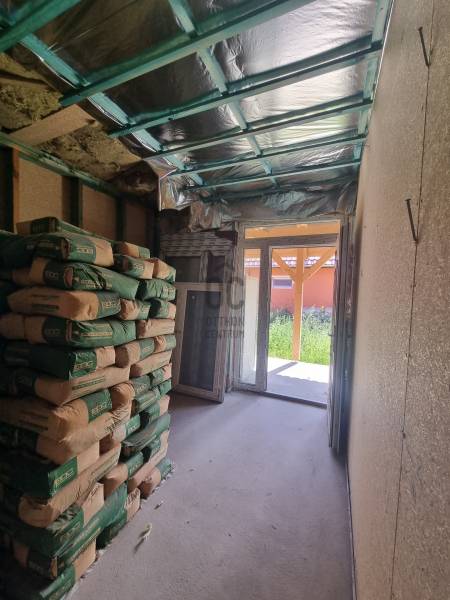 Fiatal felnőttek, figyelem! Most egy igazán különleges lehetőséget kínálunk számodra, amely tökéletesen illeszkedik a modern életstílushoz és a jövőbeli elképzeléseidhez. Somogy vármegye szívében, Ádándon található ez a hatályos építési engedéllyel rendelkező félkész könnyűszerkezetes egyszintes családi ház, amelynek hasznos alapterülete 112 nm, és egy hatalmas 6556 nm-es telek tartozik hozzá.A ház jelenlegi készültségi foka:- a tetőn minőségi Terran betoncserép és egy napelem rendszer található- 3 rétegű üvegezéssel ellátott 7 légkamrás műanyag kívül színezett nyílászárók szúnyoghálóval és redőnnyel szerelve - 10 cm vastag aljzat szigetelés, + 15cm főfalszigetelés+ 15cm homlokzati szigetelés- az aljzatképzés a fürdőszobák kivételével megvalósult- villamoshálózat alap szerelése előkészítve- belső párazárás és gipszkartonozás részben megvalósult- a teljes faszerkezet törvényben előírt vegyszeres védelemmel ellátva- víz, villany, csatorna bevezetve- tetőtér igény szerint tervmódosítással beépíthető Itt nemcsak egy otthont vásárolhatsz, hanem egy lehetőséget is, hogy álmaid otthonát valósítsd meg. A házban öt szoba, két fürdőszoba vár rád, amelyeket könnyedén átalakíthatsz az igényeid szerint. Az amerikai konyhás nappali különösen vonzó lehet, hiszen itt a barátaiddal és családoddal együtt töltheted a szabadidőt. Képzeld el, ahogy az egyedi tervezésű otthonodban minden részlet a te ízlésedet tükrözi! A környék csendes és biztonságos, ideális helyszín a pihenésre és a feltöltődésre. A falusi Csok támogatás lehetősége pedig még vonzóbbá teszi ezt az ingatlant, hiszen így könnyebben valósíthatod meg álmaid otthonát. A bővítési lehetőség pedig lehetőséget ad arra, hogy a jövőben tovább növeld az ingatlan értékét, hiszen a telek mérete lehetővé teszi, hogy újabb épületeket, garázsokat vagy akár egy szép kertet alakíts ki. A közlekedés szempontjából is kedvező helyen fekszik az ingatlan. Az autóval könnyedén megközelíthető főbb utak és a közeli buszmegállók révén Siófok és a Balaton part is gyorsan elérhető. Ne hagyd ki ezt a remek lehetőséget, hogy egy új, befejezésre váró ház tulajdonosa légy, ahol a saját ízlésed és kreativitásod érvényesülhet! Ha bármilyen kérdésed van, vagy szeretnéd megtekinteni az ingatlant, ne habozz keresni bizalommal. Az álmaid otthona csak egy lépésnyire van!