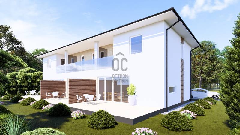 \"Balatonszárszó\" - Balaton déli partjának egyik utolsó romantikus kisvárosa, települése - egészen egyszerűen mesés.A Balatonparttól mintegy 700m-re elhelyezkedő kínálunk eladásra egy minden elvárásnak megfelelő 3 lakóegységes sorházi lakások képében.Tervezett műszaki átadás: 2026.08.15.Műszaki Tartalom:Alapozás:A sávalap 90 cm mély és 40 cm széles, 1 sor 30 cm-es lábazati zsalukőből épül. Aszerelőbeton vastagsága 12 cm lesz.Teherhordó falazat+tetőszerkezet:Magnézium-oxid PIR SIP panelt használunk 18 cm-es PIR szigeteléssel, 5x10 cm-es KVH faszerkezetű válaszfalak készülnek, gyapot szigeteléssel. Az épületre előregyártottszeglemezes tető kerül telepítésre.Tetőfedés-bádogozás:Az épületre Terrán tégla cserép kerül, színazonos bádog elemekkel.Homlokzati hőszigetelés:A lábazatra 5 cm vastag XPS szigetelés kerül, míg a homlokzaton 10 cm grafitos EPSszigetelést alkalmazunk, 1,5 mm-es kapart vakolattal.Homlokzati nyílászáró:6 légkamrás, 3 rétegű üvegezésű nyílászárókat építünk be, úgy, hogy a hőszigetelési érték0,6-0,8 között legyen. A nyílászárók kívül alumíniumból, belül fehér műanyag párkánnyalkészülnek. Redőny opcionálisan választható.Épületgépészet:A vízvezeték-szerelés 5 rétegű csövekkel történik az aljzatban és az előtét fal mögött,csőroppantással és a szükséges idomokkal. A szennyvízcsövek gumigyűrűs tokos rendszertalkalmaznak, a WC 110 mm-es, míg a mosdó, kád és egyéb lefolyók 50 mm-es átmérővelkészülnek.Mosógép és mosogatógép számára falba szerelt vízvételi és vízelvezetési lehetőségetbiztosítunk. A szaniterek a nettó 400.000 Ft értékig választhatók. Az ár az építettzuhanyfülke kivitelezését is tartalmazza.A melegvizet és a padlófűtést monoblokkos hőszivattyú biztosítja, 2 db Wifi-s GREE okosklímákkal.Villanyszerelés:Vezeték nélküli villanykapcsolót alkalmazunk, amely bárhova elhelyezhető és később isáthelyezhető. Schneider Asfora típusú dugaljakat telepítünk.A villamos alapszerelés helyiségenként 1 kapcsolót, 1 lámpa kiállást és 3 konnektorttartalmaz. A konyhai gépek (hűtő, mikró, sütő, mosogatógép, páraelszívó, főzőlap) alapkiállásai biztosítva vannak.A villamos betáplálás a mérőhelytől 1x15 m távolságig van biztosítva. A födém szerkezeténcsőben, MBCU kábelekkel történik a vezetékek elhelyezése, az oldalfalon és az előtét falmögött.Gipszkartonozás:A mennyezetre 1 réteg 15 mm-es tűzgátló gipszkarton kerül.Könnyűszerkezetes házak esetében a főfalak és válaszfalak 1 réteg 12,5 mm-es tűzgátlógipszkarton borítást kapnak. A vizes helyiségben impregnált karton kerül felhelyezésre.A födémre hőtükör fólia kerül rögzítésre.Beltéri ajtók:Utólag szerelhető beltéri ajtókat építünk be. Nettó 80.000 Ft/ajtó értékben. Drágább beltériajtók is választhatóak, felár ellenében.Festés:A gipszkarton felületeken glettelés történik, pozitív éleken élvédőt, negatív éleken pedigüvegszövet hálót alkalmazunk.A kész falfelületet fehér színnel festjük.Burkolás:A hidegburkolat ára nettó 5500 Ft/nm-ig választható.A WC és fürdőszoba falai mennyezetig burkolva.Laminált padló alátétfóliával, nettó 5500 Ft/nm-ig választható.Szegélyek, sarokelemek és toldók nettó 1200 Ft/nm-ig választhatóak.Ezeken felül műszaki tartalmunk lakásonként 1,5 kW napelem telepítéstis tartalmaz.A vételáron felül további 5 Mft-ért kötelezően megvásárolandó, elektromos töltéshez előkészített szabad felszíni beálló.Felmerülő kérdések illetve megtekintés esetén állok rendelkezésére.