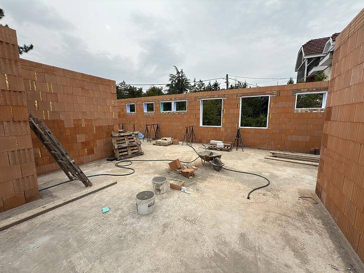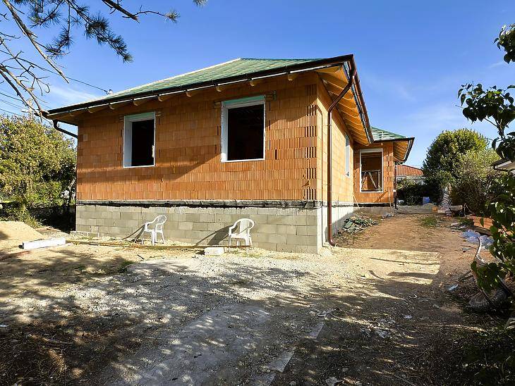 SZENTENDRÉN PISMÁNY ALJÁBAN ELADÓ EGY ÚJÉPÍTÉSŰ FÖLDSZINTES ÖNÁLLÓ CSALÁDI HÁZ!KÖRNYÉK: Szentendre kedvelt részén, Pismány aljában helyezkedik el, egy központi, de mégis csendes helyen. A buszmegálló 6 perc sétára található, ahonnan könnyedén megközelíthető a belváros, a H5-ös HÉV, és még Budapest is.A HÁZ JELLEMZŐI:A várható átadás 2026. 1-2. negyedév lesz.-Hasznos alapterület: 123 nm.-Telek: 535 nm.-Az ingatlan 30 cm-es POROTHERM téglából épül, és 12 cm-es EPS szigetelést kap.-Plusz egy 21,13 nm-es terasz.-Plusz egy 4 nm-es kamra.-A nyílászárók 3 rétegű műanyagból vannak, és thermo üvegezésűek.-A fűtésért hőszivattyú felel. A hőleadók radiátorok.-Fagerendás födém.-A tetőt kerámia cserép fedi, alatta pedig 25 cm-es kőzetgyapot szigetelés található.-Összközműves.VÁLASZTHATÓ ANYAGOK/ÁRAK:-Hideg,meleg burkolat (csempe fürdőknél ajtó magasságig burkolva 210cm)6.000ft/m2.-Beltéri ajtók kompletten 70.000ft/db.-Mosdók 50.000ft/db.-WC kompletten 50.000ft/db.-Kád/zuhanykabin 70.000ft/db.-Csaptelepek 20.000ft/db.-Törölközős szárító radiátor 40.000ft/db.-Fehér műanyag Párkányok kívül-belül.-Viakolor 50m2 sima standard szürke viakolorkővel.-Ház körül 60cm szélesen beton járda.-Kapcsolók dugaly 70db 1000ft/db.-2x glett,festés.-Estric beton szálerősítés.-2klíma kiállás.FINANSZÍROZÁS:Tehermentes, banki finanszírozással is megvásárolható, melyben irodánk ingyenes tanácsadással áll rendelkezésükre!VEVŐINK RÉSZÉRE A KÖZVETÍTÉS DÍJTALAN!A hirdetésben szereplő adatok tájékoztató jellegűek.