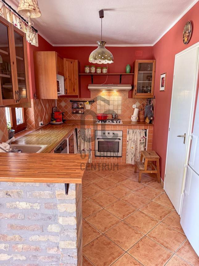 Amennyiben olyan OTTHONRA vágyik ahol a napi \"mókuskerékből\" kiszeretne lépni családjával együtt, csendre és nyugalomra vágyik, akkor ez az ÖN otthona! Kiváló állapotú, 197.12 nm alapterületű, nappali + 4 szobás, 2 fürdőszobás, világos és modern ház, 2 állásos garázzsal, pincével, eladó a Fejér vármegyei Bakonykútiban Az ingatlan egy 1592 nm nagyságú, rendezett telken található, melyből gyönyörű panoráma nyílik a környékre. Az otthon tágas nappalival rendelkezik, melyhez egy 54.78 nm méretű terasz is tartozik, ahol a család és barátok együtt élvezhetik a nyári estéket. A beépített bútorok és szekrények kényelmes és praktikus tárolást biztosítanak, az integrált szúnyogháló pedig biztosítja az éjszakai zavartalan pihenést. A tehermentes ingatlanban biztonsági ajtó található, így a család és az otthonuk mindig biztonságban érezheti magát. Jólfelszerelt konyhával rendelkező otthon, KLIMÁVAL is felszerelt. A ház alatt található a méretes pince és a 2 férőhelyes garázs is, így a család autói is biztonságban parkolhatnak. A környék csendes és rendezett, ideális választás családosok számára. Az autóval közlekedők számára könnyen megközelíthető, de a tömegközlekedési lehetőség is adott.A ház beton sávalapra épült, a külső térelhatároló falak POROTHERM 38-as falazóelem a belső teherhordó fal, POROTHERM 30-as falazóelemből, míg a válaszfalak 10cm-es válaszfallapokból készült. A födém POROTHERM födém előre gyártott áthidalókkal készült.A tetőszerkezet az előírásoknak megfelelően előkészítve lett beépítve, cserép héjalással fedve.Nyílászárók, a homlokzati falon korszerű, hőszigetelt, fa szerkezetű, egyedi ablakok, üvegfalak, illetve ajtók vannak, a belső nyílászárók hagyományos faajtók.A gázkazánnak SCHIEDEL (SIH 16) kémény, a kandalónál, amely tartalék kémény szerepét is betölti, falazott 20/14 cm kürtőméretben készült.A ház hőellátását és melegvízellátását a 24 Kw-os gázüzemű kombinált kazán biztosítja. A hőellátás radiátorokon keresztül történik.A szobák parketta burkolást kaptak, míg a többi helyiség kerámia burkolással lettek burkolva. Az idén még igénybe vehető CSALÁDTÁMOGATÁSOK:- FIX 3%-os hitel 50 millióig- CSOK+- 3%-os CSOK HITEL- 5%-os Áfa visszatérítés-ILLETÉKMENTESSÉG Ha szeretne egy igazi családi otthont, amely minden igényét kielégíti, akkor ez az ingatlan az Ön számára tökéletes választás. Keressen minket bizalommal, ha kérdése van az ingatlannal kapcsolatban!Vidék, csendes, zöld, terasz, szoba, ház, kert