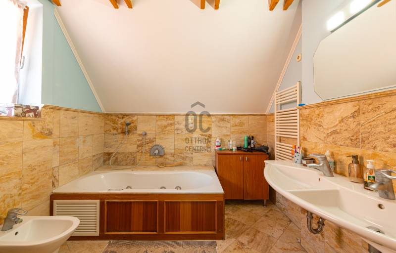 KITŰNŐ AJÁNLAT SOLYMÁROM!Tisztelt Érdeklődő,egy igazán különleges ingatlanra hívom fel figyelmét. Két lakásos családi ház megnevezésű,de a mi esetünkben a két lakás nem egymás felett hanem egymás mellett helyezkedik el.Közös bejáraton kívül teljesen elkülönülnek egymástól. Így inkább családi ház jellegű.Két épület külön mérőórákkal rendelkezik.Az ajánlatunkban szereplő ház brutto 240nm-es /a 190 cm feletti 184 nm/.Telek 300 nm.Az ingatlanok ügyvédi megosztással rendelkeznek.2003-ban épült ház az akkor legmagasabb igényeknek megfelelő anyagok felhasználásával. Tulajdonos építész,aki saját használatra építtette az ingatlant,így a magas színvonal garantált.A ház három szintes ,Alagsor-úgy lett tervezve,hogy egy ajtó megnyitásával ,külön bejáratú lakás kialakítható.jelenleg 63.nm fürdővel háztartási helységgel,és egy nagy szobával.Földszint-lépcsőtér,előszoba,konyha,nappali-étkező,66.88nm. Nappali hatalmas üveg felületekkel rendelkezik innen lehet kijutni a teraszra illetve a kertbe.Tetőtér-3 háló,2 fürdőszoba/tusolós ill.kádas/toalett,dolgozó szoba,innen lehet egy falépcsön feljebb jutni ahol egy 20 nm-es közös tér lett kialakítva.Az egyik hálóból nyílik egy 15 nm-es terasz csodás kilátással a környező hegyekre.Müszaki ősszegzés-építés éve,2003,falazat 38-as porotherm téglaszigetelés .közetgyapot 5 cm.es nehéz lépésállóTető-cserép korona fedésFűtés.-Vaillant atmoszférikus gázkazán.Parkettás helységben radiátor,hidegburkolat alatt padlófütés.Redőnyők aluminium hőszigeteltek.Légkondi minden helységben.Ablakok-Indonéz tölgy.Parketta-tölgy illetve kőris intarziás berakásos.Hideg burkolat-Süttői kö polírozott diagonál.Vízlágyító,központi porszívó,riasztó beszerelve.Falakon Svéd textiltapéta!Anna kápolna közelsége miatt,járművekkel is könnyen elérhetünk mindent a környéken.Szonszédok kultúráltak,összeszokott lakóközösség,Közelben erdő,kíváló kiránduló helyekkel!Az ingatlan rugalmasan mutatható,azonnal költözhető,várom megtisztelő hívását ,hétvégén is!