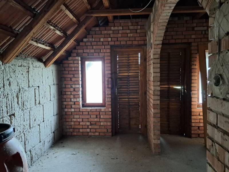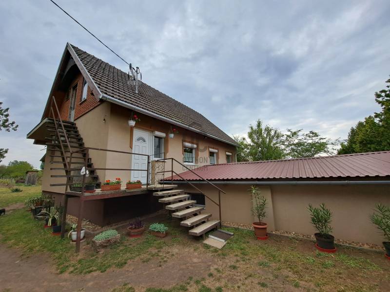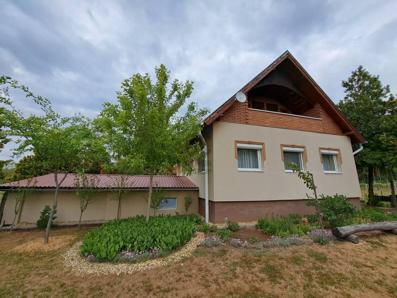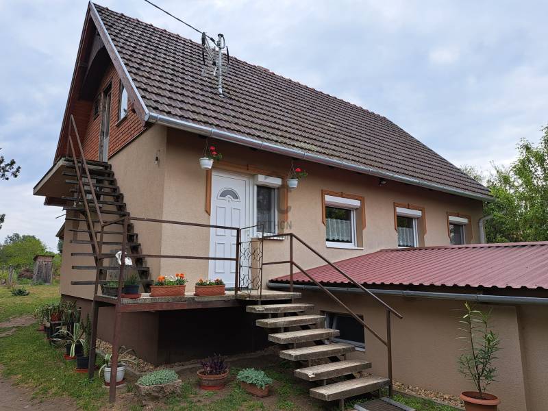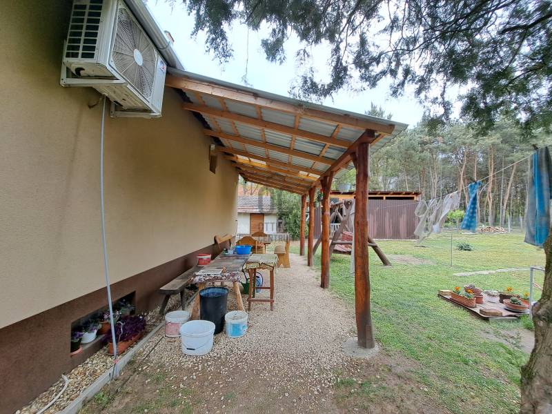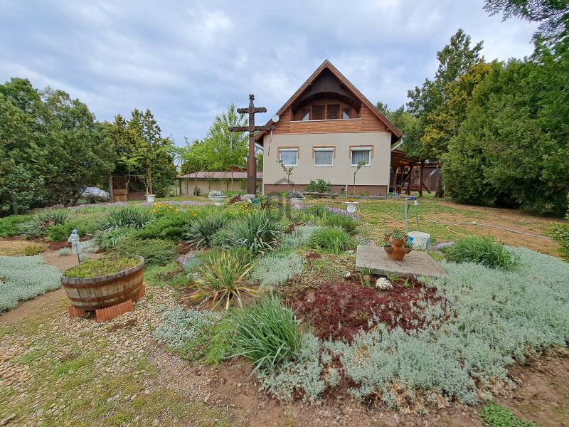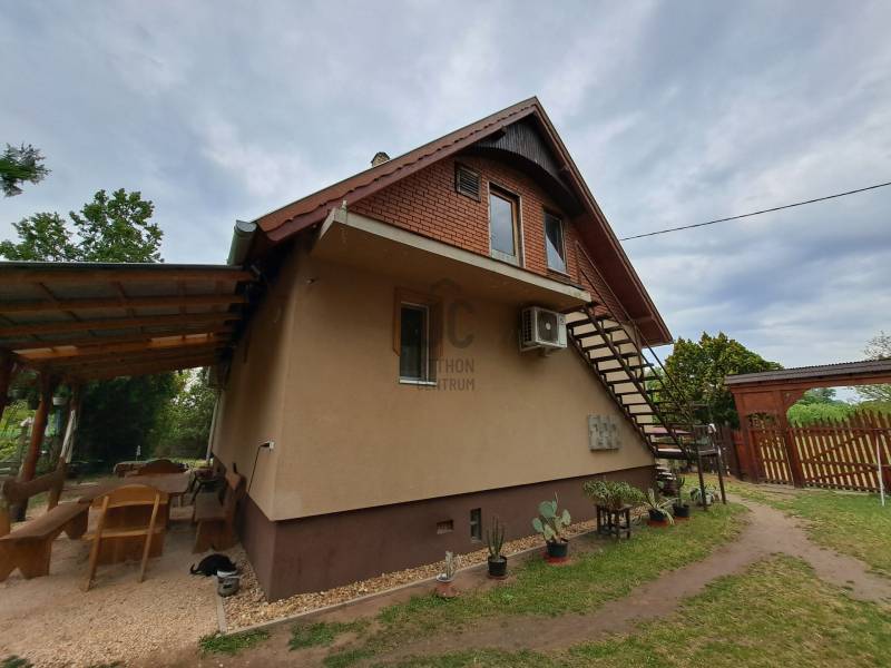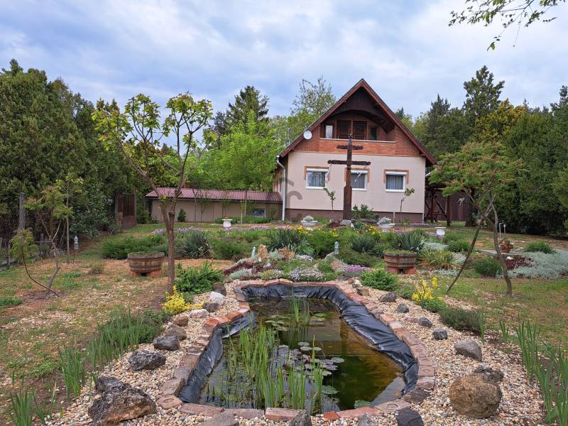 Megvételre kínálok Albertirsán, 25 percre a Fővárostól, M4 autópálya közelében, 6122 nm-s telken, tégla építésű családi házat.A telekre egy nagyon szépen faragott Székely Kapun jutunk be. Ezek a faragások az ingatlanon is jellemzőek, mely kellemes hangulatot ad neki.Az ingatlan 1990-es években épült, de 2020-ban nyerte el a jelenlegi formáját.Víz és villany hálózata felújított, 10 cm nikecell szigetelést kapott, műanyag nyílászárókkal, redőnnyel és szúnyoghálóval.Fűtése Gree típusú, hűtő- fűtő klímával, H tarifás elszámolással. Igény szerint kialakítható központi fűtés is, vagy kandallók elhelyezése.Az épület 3 szintes.Pince szinten helyet kapott 1 kamra, boros pince,pince, borozgató, és egy konyhának kialakított helység(70 nm).Akár lakórésznek is átalakíthatók.A jelenlegi lakórész lépcsőn megközelíthető,.Ezen a szinten szoba, kis gardróbbal, konyha+ étkező, zuhanyzós fürdőszoba, és egy világos előszoba, melyből leválasztható akár egy félszoba is (70 nm).A külső lépcsőn megközelíthető tetőtér szerkezetkész, ( közfalak állnak) melyben 2 szoba, konyha és fürdőszoba, erkély került kialakításra (33 nm).Vízellátása 40 méter mély fúrt kútról, mely bevizsgált. Szennyvíz derítőbe vezetett. A telek 2 helyrajzi számon szerepel, művelési ágból kivont területként és gazdasági épület.Kifüggeszteni nem kell, de nem hitelezhető.A telek teljesen körbe kerített, több részre osztott, gyümölcsös, szőlő, veteményes, baromfi udvar, akácos, mely alatt kecskék istállója található.Udvarán gazdasági épület, nyári konyha, parkosított füvesített terület, kis kerti tóval.Ha nem szeretne messze költözni a Fővárostól, de önellátó gazdálkodást szeretne kialakítani, akár több generáció számára, ez az ingatlan önre vár!Hívjon mielőbb bizalommal és nézze meg velem!