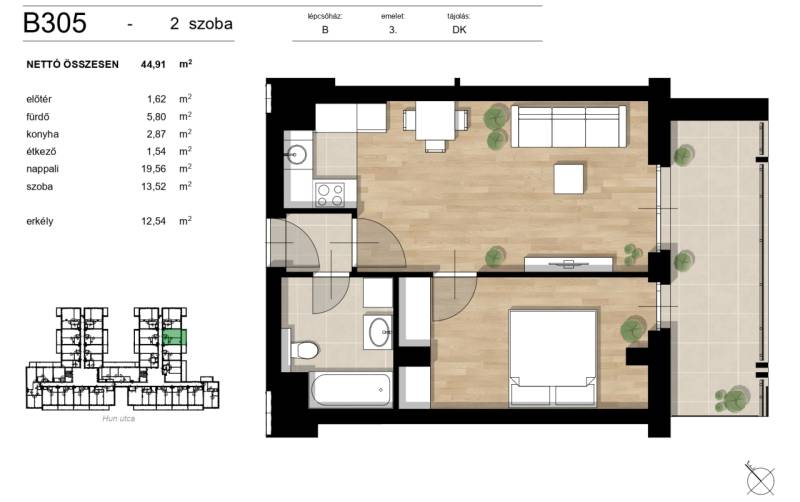 Minőségi, új építésű lakás, szeptemberi átadással!Budapest XIII. kerületében a Hun utcában, új építésű társasházban eladásra kínálok harmadik emeleti, 45 nm-es lakást, 13 nm-es erkéllyel.A lakáshoz teremgarázs hely vásárolható 6.99MFt-ért.A kivitelező több mint 15 éve jelen van a piacon, és több mint 2.500 lakás kivitelezésében vett részt. Kiváló közlekedéssel, a belvárostól mindössze öt percre található.Bevásárlási és rekreációs lehetőségek a közelbenKiváló tömegközlekedésGazdaságos, fenntartható otthonokLegmodernebb hőszivattyús mennyezeti hűtés fűtés, alacsony rezsi!Egyedülálló belső zöld környezetVilágos életterekHangulatos belső térA Róbert Károly körút melletti beruházással elegáns, élhető otthonokat terveztek, fiataloknak, időseknek valamint akiknek fontos a városias de mégis zöld környezet.Részletekért, további információkért várom megtisztelő hívását! B305