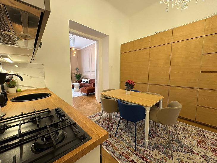 Budapest belvárosának egyik legkedveltebb utcájában, a VI. kerületi Lovag utcában, kínálunk megvételre egy 91 nm-es, 3 szobás, teljes körűen felújított lakást. Az ingatlan egy jó állapotú, klasszikus polgári társasház 2. emeletén található, világos, tágas terekkel és ízléses kialakítással. A lakásban modern konyha, igényesen felújított fürdőszoba, valamint három különnyíló szoba került kialakításra, ami ideálissá teszi családoknak, pároknak vagy akár irodai célra is. Az ingatlan minden részlete a minőséget és a kényelmet tükrözi – a felújítás során minőségi anyagokat használtak fel, így az új tulajdonosnak már csak költöznie kell. A környék infrastrukturálisan kiváló: közel a Nyugati térhez, az Oktogonhoz, az Andrássy úthoz, tömegközlekedés, üzletek, éttermek, kávézók mind néhány perc sétára találhatók.Az adatok tájékoztató jellegűek.