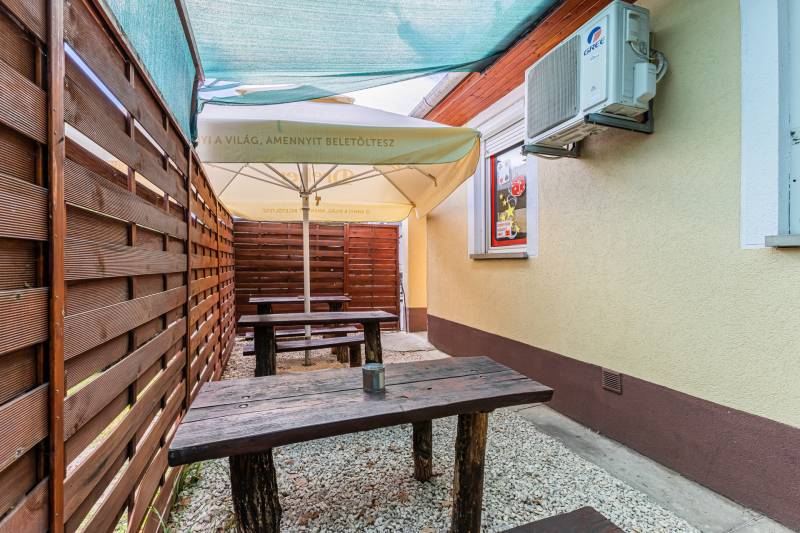 Eladásra kínálunk egy 55 nm-es, kimagaslóan szép állapotban lévő üzlethelyiséget, amelyhez egyedülálló módon 45 nm saját telekrész is tartozik. Az ingatlan jelenleg több mint 35 éve sikeresen működő sörözőként üzemel, állandó vendégkörrel, így akár azonnal folytatható a tevékenység.Kiváló elhelyezkedése miatt – frekventált gyalogos és autós forgalom mellett – számos lehetőséget kínál:vendéglátás, kávézó vagy bárfodrászat, szépségszalon, kozmetikairoda, kereskedelmi üzlet, bemutatóteremAz ingatlan helyiségei: tágas üzlettér, női és férfi mosdó, valamint raktár.Főbb előnyök:központi, forgalmas lokációsaját telekrész (45 nm) – ritkaságszámba megy a környékenkiváló állapotbejáratott vendégkör, folytatható tevékenységMegtekintés kizárólag előzetes időpont-egyeztetés alapján lehetséges.