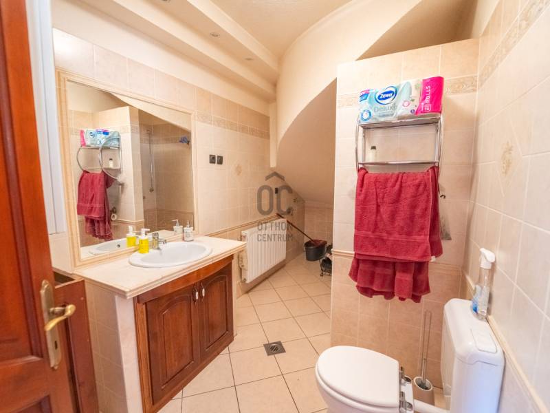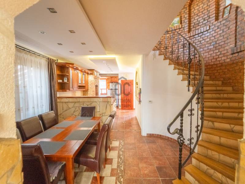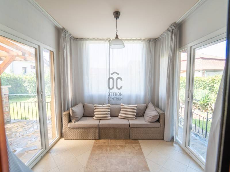 Debrecenben, a kedvelt Csapókert városrészben eladó egy 2004-ben épült, mediterrán stílusú, kétgenerációs családi ház, amely különleges hangulatával és átgondolt kialakításával egyaránt kényelmes otthont és értékálló befektetést kínál.A nagyobb, 122,11 nm nettó alapterületű főépület a családi élet minden igényét kielégíti. A földszinten tágas nappali, étkező és konyha kapott helyet, amelyet egy praktikus kamra és zuhanyzós fürdőszoba egészít ki. A télikert közvetlen kapcsolatot teremt a kerttel, így egész évben élvezhető a természet közelsége. Az emelet három hálószobát, társalgót és további fürdőszobát kínál, ahol különlegességként egy háromszemélyes infraszauna is található. A nappali központi eleme a kandalló, amely nemcsak meghitt hangulatot teremt, hanem a hidegebb napokon kiegészítő fűtést is biztosít.A kisebb, 50,22 nm nettó alapterületű különálló ház teljes értékű otthonként funkcionál. Nappali, két hálószoba, konyha, előszoba és fürdőszoba alkotja, így ideális lehetőség többgenerációs családoknak, önálló lakrészként a fiatalabb vagy idősebb családtagok számára, de akár kiadásra is tökéletes választás. Az önálló bejárat és külön mérőórák (gáz, villany) teljesen független használatot tesznek lehetővé.Az ingatlan modern műszaki megoldásokkal felszerelt: két éves kondenzációs kazán biztosítja a gazdaságos fűtést, hőszigetelt fa nyílászárók és szép állapotú fa beltéri ajtók garantálják az esztétikus megjelenést. Klímaberendezés, riasztó- és kamerarendszer, alumínium redőnyök és energiatakarékos LED világítás növelik a komfortot és a biztonságot.A 550 nm-es telek igazi kikapcsolódási központ. A 5x3 méteres úszómedence a nyári forróságban nyújt felfrissülést, a fúrt kút és az automata öntözőrendszer gondoskodik a kert mindig ápolt állapotáról. A 20 nm-es fedett grillterasz ideális baráti összejövetelekhez és családi programokhoz, míg a 15 nm-es fedett kocsibeálló és az automata kapu kényelmes parkolási lehetőséget nyújt. Emellett egy 18 nm-es könnyűszerkezetes garázs is rendelkezésre áll. A jövő kihívásaira is felkészülve, két elektromos autó töltő biztosítja a modern közlekedési igények kiszolgálását.Ez a mediterrán stílusú kétgenerációs családi ház egyszerre nyújt kényelmet, biztonságot és élményt a mindennapokban. Ha olyan otthont keres, ahol két generáció kényelmesen élhet egymás mellett, vagy szeretné kihasználni a kisebb lakrészben rejlő bérbeadási lehetőséget, ne hagyja ki ezt az ajánlatot. Kérjen további információt vagy időpontot a személyes megtekintéshez, és fedezze fel, mennyi lehetőség rejlik ebben a különleges ingatlanban.Ez az ingatlan a \"Felező csomag” megbízási portfólióhoz tartozik. Részletek az Otthon Centrum weboldalán.Az ingatlanról teljes körű videó felvétel készült, a megtekintése érdekében weboldalunkon keresse a H506523 regisztrációs számon vagy keressen telefonon közvetlenül.Ez az ingatlan a \"Felező csomag\" megbízási portfólióhoz tartozik. Részletek az Otthon Centrum weboldalán.