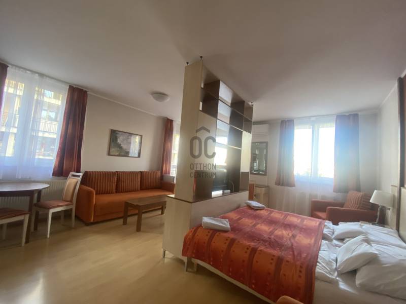 Budapest XIII. kerületében, az Országbíró utcában felújított apartmanházban hosszú távra (minimum 1 év) kiadóak modern, igényesen berendezett, gépesített, teljes felszereltségű lakások (38,7 m², 44,3 m², 32,6 m²) melyek erkélyéről parkos, zöld környezetre nyílik kilátás. A lakások nappali + hálófülke elrendezésűek.Beköltözés azonnal lehetségesBérlők száma: maximum 2 főKaució: 2 x 850 EUR/apartmanBérleti díj: 700 EUR/hó/apartmanRezsi: 150 EUR/hó/apartman, amely tartalmazza a hűtést-fűtést, áramot, vizet, internetet, kábel TV-t, heti egyszeri takarítást és a 24 órás recepció szolgáltatásátHáziállat: kis méretű, jól nevelt kutya vagy cica hozhatóAz ingatlan kiváló elhelyezkedésű, könnyen megközelíthető tömegközlekedéssel, a közelben számos bevásárlási lehetőséggel. Az épületben kávézó, étterem és üzletek is találhatók.Hívj bizalommal, ha megtekintenéd!