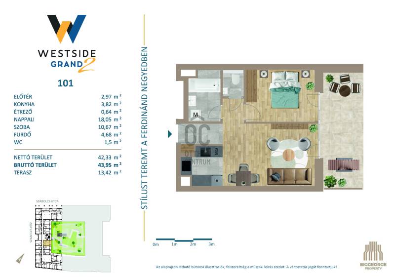 Projekt bemutatásaA projektrőlA Westside Grand I-II. a Biggeorge Property Westside fejlesztés sorozatának - a Westside Residence és a Westside Gardent követően - legújabb tagja.LokációBudapest egyik leggyorsabban fejlődő kerületének központi területén, a XIII. kerületben, a Városligettől és a megújuló Nyugati pályaudvartól sétatávolságra épül. A Nyugati pályaudvar környéke az elkövetkezendő években szinte teljesen megújul, a XIII. kerületben elhelyezkedő Szabolcs utcában, illetve közvetlen környezetében számos új építésű ingatlan épült, melyek jelentős értéknövekedést kínálnak a környéken ingatlant vásárlóknak. A több ütemben megvalósuló lakóingatlanfejlesztések hatalmas zöld parkot ölelnek körül, így a lakók akár az erkélyen ülve is élvezhetik a csendet, nyugalmat és zöld környezetet egy központi, belvárosi környezetben is.
