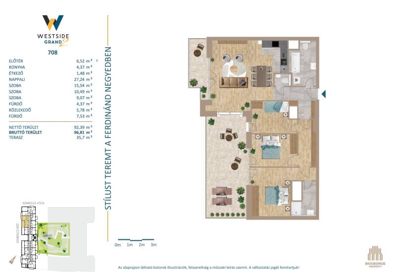 Projekt bemutatásaA projektrőlA Westside Grand I-II. a Biggeorge Property Westside fejlesztés sorozatának - a Westside Residence és a Westside Gardent követően - legújabb tagja.LokációBudapest egyik leggyorsabban fejlődő kerületének központi területén, a XIII. kerületben, a Városligettől és a megújuló Nyugati pályaudvartól sétatávolságra épül. A Nyugati pályaudvar környéke az elkövetkezendő években szinte teljesen megújul, a XIII. kerületben elhelyezkedő Szabolcs utcában, illetve közvetlen környezetében számos új építésű ingatlan épült, melyek jelentős értéknövekedést kínálnak a környéken ingatlant vásárlóknak. A több ütemben megvalósuló lakóingatlanfejlesztések hatalmas zöld parkot ölelnek körül, így a lakók akár az erkélyen ülve is élvezhetik a csendet, nyugalmat és zöld környezetet egy központi, belvárosi környezetben is.