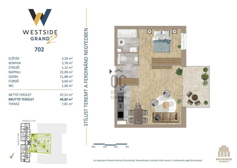 Projekt bemutatásaA projektrőlA Westside Grand I-II. a Biggeorge Property Westside fejlesztés sorozatának - a Westside Residence és a Westside Gardent követően - legújabb tagja.LokációBudapest egyik leggyorsabban fejlődő kerületének központi területén, a XIII. kerületben, a Városligettől és a megújuló Nyugati pályaudvartól sétatávolságra épül. A Nyugati pályaudvar környéke az elkövetkezendő években szinte teljesen megújul, a XIII. kerületben elhelyezkedő Szabolcs utcában, illetve közvetlen környezetében számos új építésű ingatlan épült, melyek jelentős értéknövekedést kínálnak a környéken ingatlant vásárlóknak. A több ütemben megvalósuló lakóingatlanfejlesztések hatalmas zöld parkot ölelnek körül, így a lakók akár az erkélyen ülve is élvezhetik a csendet, nyugalmat és zöld környezetet egy központi, belvárosi környezetben is.