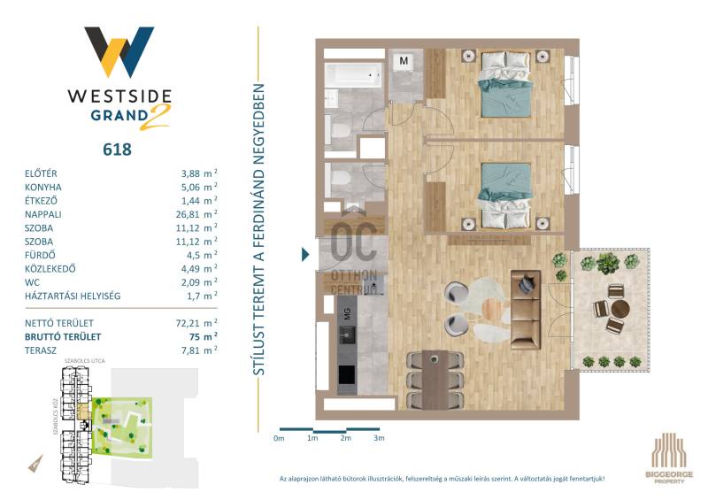 Projekt bemutatásaA projektrőlA Westside Grand I-II. a Biggeorge Property Westside fejlesztés sorozatának - a Westside Residence és a Westside Gardent követően - legújabb tagja.LokációBudapest egyik leggyorsabban fejlődő kerületének központi területén, a XIII. kerületben, a Városligettől és a megújuló Nyugati pályaudvartól sétatávolságra épül. A Nyugati pályaudvar környéke az elkövetkezendő években szinte teljesen megújul, a XIII. kerületben elhelyezkedő Szabolcs utcában, illetve közvetlen környezetében számos új építésű ingatlan épült, melyek jelentős értéknövekedést kínálnak a környéken ingatlant vásárlóknak. A több ütemben megvalósuló lakóingatlanfejlesztések hatalmas zöld parkot ölelnek körül, így a lakók akár az erkélyen ülve is élvezhetik a csendet, nyugalmat és zöld környezetet egy központi, belvárosi környezetben is.