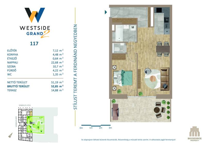 Projekt bemutatásaA projektrőlA Westside Grand I-II. a Biggeorge Property Westside fejlesztés sorozatának - a Westside Residence és a Westside Gardent követően - legújabb tagja.LokációBudapest egyik leggyorsabban fejlődő kerületének központi területén, a XIII. kerületben, a Városligettől és a megújuló Nyugati pályaudvartól sétatávolságra épül. A Nyugati pályaudvar környéke az elkövetkezendő években szinte teljesen megújul, a XIII. kerületben elhelyezkedő Szabolcs utcában, illetve közvetlen környezetében számos új építésű ingatlan épült, melyek jelentős értéknövekedést kínálnak a környéken ingatlant vásárlóknak. A több ütemben megvalósuló lakóingatlanfejlesztések hatalmas zöld parkot ölelnek körül, így a lakók akár az erkélyen ülve is élvezhetik a csendet, nyugalmat és zöld környezetet egy központi, belvárosi környezetben is.