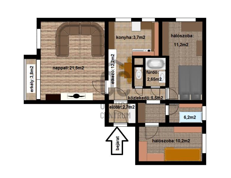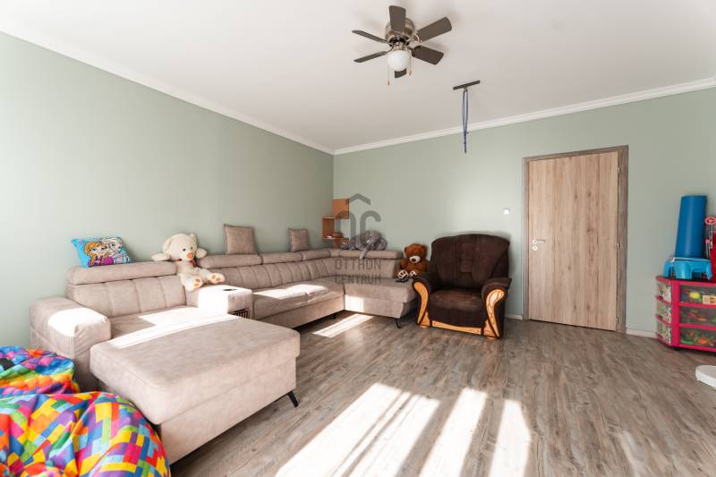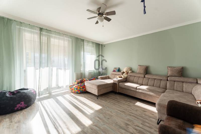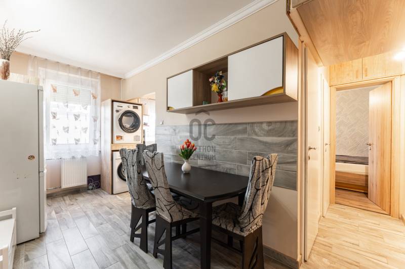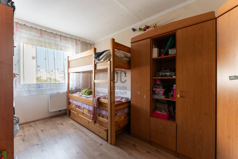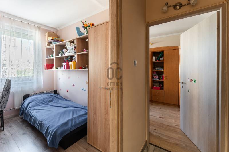 Eladó egy 76 m²-es, 3+fél szobás, erkélyes lakás a Víziváros kedvelt részén, egy tízemeletes társasház 8. emeletén. A lakás elsősorban nagycsaládosok számára ideális, de mindazoknak is tökéletes választás, akik központi elhelyezkedés mellett kényelmes, jól szeparált életteret keresnek.Főbb jellemzők:Teljes körű felújítás 2022-ben (burkolatok, szaniterek, nyílászárók, beltéri és bejárati ajtók cseréje)Tágas, világos terek, praktikus elosztásHatalmas konyha-étkező beépített bútorzattal (a vételár részét képezi)2 db beépített szekrényAkadálymentesített épület, két bejárattal, lifttelSaját, zárható tároló közvetlenül a bejárat előttIngyenes parkolás az épület előttMűszaki extrák:Bővített villamoshálózat (32A), rézvezetékezés, energiatakarékos LED világítás minden helyiségbenMűanyag nyílászárók redőnnyel, rovarhálóvalKlímaberendezésBelső szigetelés a szülői háló egyik falánKádas fürdőszoba törölközőszárítós radiátorral és modern világítássalJárólapozott, redőnnyel ellátott erkélyElhelyezkedés:A lakás három égtáj felé néz, így egész nap természetes fényben úszik. A környék csendes, mégis kiváló infrastruktúrával rendelkezik – iskola, óvoda, boltok, buszmegállók pár perc sétára.Közös költség: 14.500 Ft/hóEz az ingatlan egy igényesen felújított, jól átgondolt elosztású lakás, ahol minden családtagnak jut saját tér – ritka lehetőség a város ezen részén.Környék:Csendes, társasházas övezet, központhoz, főúthoz, autóbusz-megállóhoz közel. Az infrastruktúra kiváló,bevásárlási lehetőség, orvosi rendelő, gyógyszertár, posta, kisebb szolgáltató egységek, könyvtár a háztól gyalogosan mind pár perc alatt elérhető. Sétáló utca 600m-re található, legközelebbi bevásárlási lehetőség az Ineterspar áruház.Megközelíthetőség:A lakás elhelyezkedésének köszönhetően tömegközlekedéssel is nagyon könnyen megközelíthető.Parkolás a ház környékén ingyenes.Tömegközlekedéssel is nagyon könnyen megközelíthető a 14,14/G,22, 23,23/E,40,42,44-es autóbusszal.ELADÓ, 76m2, #lakás, #3+fél szoba, #felújított, #saját tároló, #légkondicionáló, #erkély, #beépített bútorok,Ez az ingatlan a \"Felező csomag\" megbízási portfólióhoz tartozik. Részletek az Otthon Centrum weboldalán.