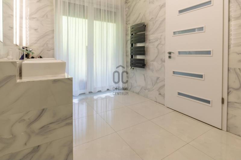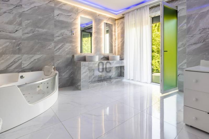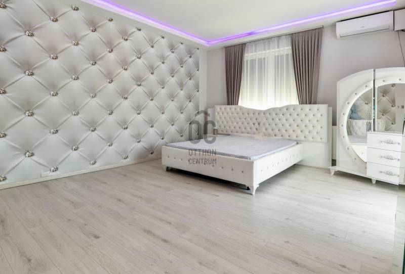 Új tulajdonosát keresi egy nagyszerű adottságokkal rendelkező, luxus igényeket is kielégítő, kétszintes, buttó 300 m2-es családi ház a III. kerületben!Ha nagyon kedvelt és keresett környéken szeretné megtalálni új, modern otthonát, ezt a házat feltétlenül nézze meg!AMIT A HÁZRÓL TUDNI KELL:- A két szintes lakóház 2022-ben épült egy parkosított, 823 m2-es telken.- Falazata Porotherm 30 X-therm tégla, 15 cm-es szigeteléssel. - Hasznos alapterülete 240 m2, a hozzá tartozó teraszok, erkélyek mérete 120 m2, bruttó mérete 300 m2.- Az épület luxus igényeket is kielégít, tulajdonosai extra minőségű anyagokat használtak az építésénél és a berendezéseknél is.- A szimmetrikus elrendezésű épület megjelenésese a modern stílus és a klasszikus elegancia tökéletes ötvözete. - Modern vonalvezetése, letisztult fehér homlokzata és a markáns, sötét színű nyílászárói prémium megjelenést kölcsönöznek. - Az épület a tájolásából adódóan, körbenapozott, szobái tágasak és világosak.- A műanyag ablakok elektromos, alumínium redőnnyel felszereltek.- A 120 m2-es földszint felosztása: hatalmas amerikai konyhás nappali és étkező, fürdőszoba wc-vel.- A hatalmas nappalit és az emeletre vezető impozáns lépcsőt Carrarai márvánnyal burkolták, ami egyedi stílust kölcsönöz a belső térnek.- Földszinti lakótér 120 m2 + összesen 61,84 m2 terasz.- Az emelet felosztása: közös nappali, 3 erkélyes szoba, közlekedő, fürdőszoba wc-vel.- Emelet 120 m2 + összesen 60 m2 terasz.- A fűtést és a meleg vizet kondenzációs kazán biztosítja padlófűtéses hől-eadással, így nincsenek látható fűtőtestek a házban.- A hűtésről minden szobában klíma gondoskodik.- Az ingatlan logikus elosztása és térkihasználása miatt kényelmes életteret biztosít.- A kert szépen gondozott, automata öntözővel, hátsó intim kertjében grillező lett kialakítva.- A térkövezett előkertbe gépkocsival széles kapun keresztül lehet beállni, ahol 6 autó számára van parkolási lehetőség.- A beépített bútorok - gépesített konyha a vételár részét képezik, a többi prémium kategóriájú bútor megegyezés tárgyát képviselik.KÖRNYÉK és KÖZLEKEDÉS:- Budapest III. kerülete, Rómaifürdő közkedvelt családi házas övezete.- A környék kimondottan családias jellegű, biztonságos, rendezett, csendes, tele zöldterületekkel, kutyabarát parkokkal, játszóterekkel. - A közlekedés a területen jó, a háztól 6 perc sétára található a 134-es, 34-es, buszok és a a H5-ős hév megállója.- Budapest egyik legszebb strandja a Római Strandfürdő 2 percnyi séta távolság.- A Római-part / Duna part 900 méter a háztól, ahol számos étterem és kulturális programok széles választéka várja a kikapcsolódni vágyókat.- Aldi, Spar, Lidl és a Csillag Center bevásárló központ pár perc alatt elérhető.- A Kisvirág Bölcsőde 900 méterre, Óvoda 400 méterre, a MOA Magán Általános Iskola 135 méterre található.- Számos neves iskola, óvoda, sportközpont és egészségügyi intézmény található a közelben.AZ INGATLAN MEGTEKINTHETŐ:- Személyesen,- Online, személyes bejelentkezéssel.FINANSZÍROZÁSBAN ONLINE ÜGYINTÉZÉSSEL IS SEGÍTÜNK!- Többszörösen díjnyertes irodánk hitelszakértői 20 éves szakmai tapasztalattal várják, előre egyeztetett időpontban akár normál munkaidőn kívül is.- Bank-független Hitel Centerünk díjmentesen versenyezteti minden bank és hitelintézet kínálatát, hogy önnek a legmegfelelőbb konstrukciót megtaláljuk.- Egyedi igényekre szabott, csak nálunk elérhető egyedi ajánlatokkal, fogyasztóbarát lakáshitelekkel, babaváró hitellel, teljes körű CSOK PLUSZ ügyintézéssel állunk rendelkezésére.Érdeklődés esetén VÁROM HÍVÁSÁT a hét minden napján!