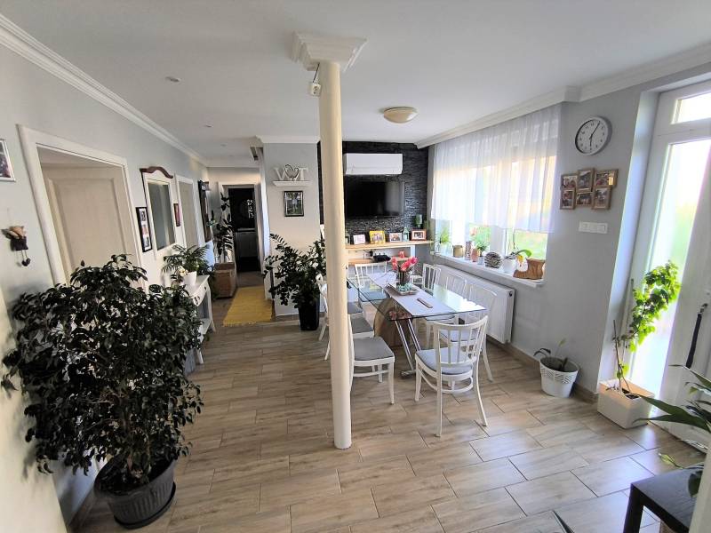 Egy igazán kellemes vidéki OTTHON!Megvételre kínálunk Nagyigmándon, Komárom közelében egy 3 szobás felújított/átépitett családi házat. Az ingatlan egy kiváló állapotban lévő régebbi építésű vegyesfalazatú!!! parasztház, mely a falakig vissza lett bontva 2018-ban, és teljeskörű felújításon és hozzáépítésen esett át, így az új tulajdonosoknak nem kell aggódniuk a felújítási költségek miatt. Nagyigmánd egy csendes, biztonságos kisváros, mely ideális otthon lehet azoknak, akik szeretnének elszakadni a város zajától, de mégis szeretnének könnyen és gyorsan elérni a nagyobb városokat. (Komárom, Tata, Tatabánya)Az épület 122 négyzetméter, amely egy 1621 négyzetméteres telken található. A házban nappali és 2 hálószoba, 1 fürdőszoba található, illetve a konyha előterében egy tágas étkező, mely akár nappaliként is szolgálhat, és amelynek köszönhetően a család minden tagja kényelmesen elférhet. Az ingatlanhoz tartozik egy 20 négyzetméteres terasz, amely a kertre és a sziklakertre néz. Az ingatlan fűtéséről egy vegyes kazán és egy vadonat új gázkazán gondoskodik radiátorokon kersztül, míg a hűtése klímával megoldott, mellyel akár télen is rá lehet segíteni a fűtésre.Az ingatlan elhelyezkedése szintén kiváló, hiszen autóval pár percre található az M1-es autópálya, így könnyen elérhető Tatabánya, Budapest és Győr is. A környék csendes és biztonságos, így ideális otthon lehet azoknak, akik szeretik a nyugalmat és a természet közelségét.Ha bármilyen kérdésed van az ingatlannal kapcsolatban, akkor bátran keress minket. Az ügyfeleink elégedettsége számunkra a legfontosabb, ezért minden kérdésre szívesen válaszolunk. Ha te is egy ilyen tágas és világos, és nem utolsó sorban ízléses ingatlant keresel, akkor ajánljuk figyelmedbe az alábbi lehetőséget. Ne habozz, és vedd fel velünk a kapcsolatot még ma, hogy az elsők közt legyél, aki megtekintheti.TATABÁNYAI LAKÁS BESZÁMÍTÁSA ÉRTÉKEGYEZTETÉSSEL LEHETSÉGES!!!Akár OTTHON START HITELLEL is!!!!Az Otthon Centrum irodánkban Önnek 20 bank és pénzintézet ajánlata közül választjuk ki a legideálisabbat. Amennyiben új, vagy használt lakást vásárolna, de nem rendelkezik elegendő fedezettel, úgy hitel tanácsadónk először felméri hitelképességét. Majd megismerteti Önnel a különböző banki termékek részleteit, és segít eldönteni, hogy mely hitelkonstrukció, vagy igényelhető támogatási forma a legmegfelelőbb az Ön számára.CSOK PLUSZ és OTTHON START igénylésében is tudunk segíteni Önnek.Nagyon nehéz és időigényes feladat eligazodni a sok banki termék és fogalom között, rendkívül bonyolult feladat a különböző lehetőségek összehasonlítása és még annál is bonyolultabb az ideális megoldás megtalálása. Az Otthon Centrum Hitel Center nagy tapasztalattal és naprakész banki információval rendelkező szakértői segítenek eligazodni 20 bank és pénzintézet termékei között és megtalálni az Ön igényeinek leginkább megfelelő személyre szabott megoldást. A hitel kiválasztását követően ismertetik Önnel, hogy milyen dokumentumok kitöltésére illetve beszerzésére lesz szükség. A hitelkérelmi csomag összeállításban kollégáink mindenben segítségére lesznek, majd az elkészült dokumentációt eljuttatják a bankba. Ha kérdése merülne fel, hívjon!