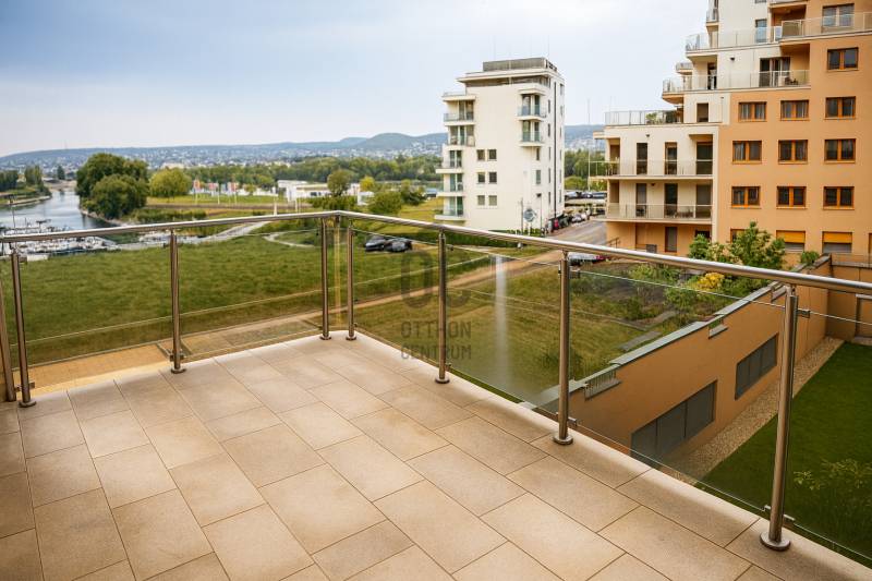 A XIII. kerület közkedvelt Duna-parti lakóparkjában, a Marina parton, a 2019-ben átadott Duna Terasz Prémium 3. emeletén, 69 m² + 16 m² terasszal rendelkező háromszobás otthon eladó. A lakás teljesen új, még soha nem lakott. 1/1 tulajdon, tehermentes, mely a vételár megfizetését követően azonnal költözhető.DUNA TERASZ PRÉMIUMA Duna Terasz Premium Budapest XIII. kerületének népszerű részén, a Foka-öböl mellett épült. A teraszház U alakú épülete egy 2500 m2-es parkot ölel körbe, amelyben a lakók számára pihenő övezetet, játszóteret alakított ki a fejlesztő. A lakópark építészete karakteres és különleges, amelyet a lépcsős, teraszos épületszárnyaknak köszönhet.A társasházban 0-24 őrszolgálat és kamerarendszer felel a lakók biztonságáért.XIII.MARINA PARTA nagyvárosok folyóparti területei a legnépszerűbb lakóövezetek szerte a világon: ez Budapesten elsősorban a Duna-part XIII. kerületi szakaszán, a Marina Parton valósult meg. A Budapest szívében található exkluzív városrész a modern lakhatás legmagasabb szintjét képviseli, tökéletes választás azoknak, akik a kényelmet és a nagyvárosi életet egyaránt értékelik. A parkosított sétányok, a kiterjedt zöldfelületek, a sportolási lehetőségek és a kényelmi szolgáltatások széles választéka gondoskodik arról, hogy minden napját teljes mértékben élvezhesse. A lakóparkban minden megtalálható, ami a mindennapi élethez elengedhetetlen.Amennyiben további információra van szüksége vagy megtekintené az ingatlant, várom hívását!