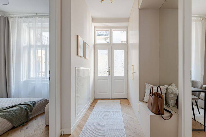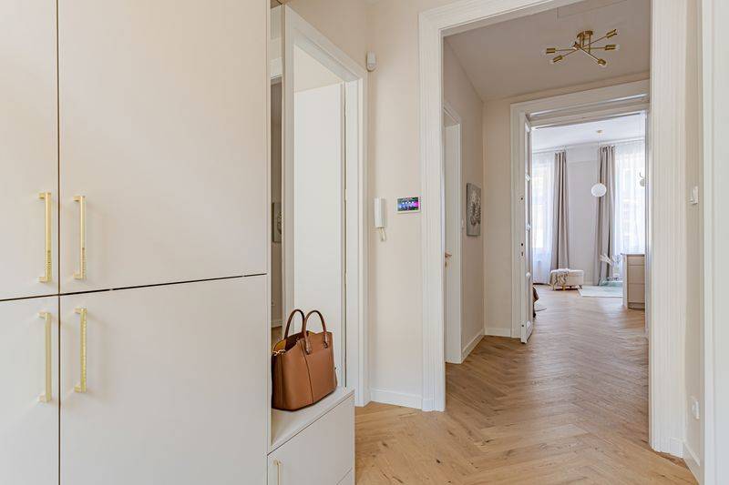 FELÚJÍTOTT, ELEGÁNS, 3 HÁLÓSZOBÁS OTTHON A KODÁLY KÖRÖNDNÉL.Budapest VI. kerület, Felső erdősor utca.Csendes, napfényes ingatlan központi helyen, metrótól 100 méterre.Kiváló lehetőség hosszú távú kiadásra is.A LAKÁS:Budapest belvárosában, egy jó állapotú és karbantartott liftes épületben, a Kodály Köröndtől 1 perc sétára, 2. emeleti, 3 hálós, 2 fürdőszobás, magas minőségben felújított ingatlan.2025 nyarán készült el a teljes körű felújítás, lakberendező által tervezett, azonnal költözhető. A munkák során az összes víz és villanyvezeték ki lett cserélve. A fűtés házközponti rendszerű. A melegvizet egy Ariston EVO energiatakarékos elektromos vízmelegítő biztosítja.A klimatizált lakás 91 m2-es. Az ingatlanba belépve egy nagy méretű előszobába érkezünk. Ebből nyílik két kisebb méretű szoba. Továbbhaladva egy előtérbe érünk, ahonnan a 2 fürdőszobába juthatunk. Az egyik fürdőben walk-in zuhanykabin, a másikban pedig fürdőkád van.A 30 m2-es nappali-konyha-étkező hatalmas ablakai miatt nagyon világos, napos helyiség. Az új Whirlpool gépesített konyha indukciós főzőlapot, légkeveréses sütőt, mikrót, páraelszívót, mosogatógépet, hűtőt tartalmaz. Az impozáns méretű hálószobához egy 8m2-es walk-in gardróbszoba tartozik, mely igazi luxus-érzést nyújt.Az ingatlanban egyedi készítésű beépített bútorok találhatók, melyek sok tárolási lehetőséget biztosítanak.