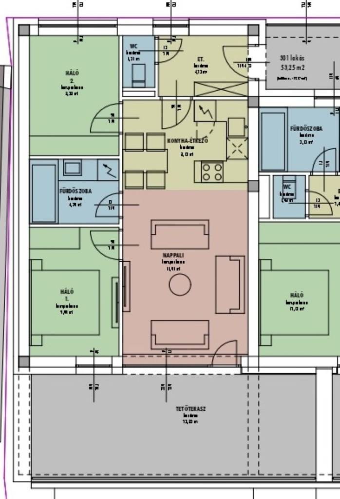 Lakások eladók Nyíregyháza belvárosában a Kossuth utca 34 szám alatt épülő új építésű A+ besorolású társasházban.Árak: 62.920.000 Ft-tól kezdődően mérettől függően.A modern megjelenésű társas házi épület Nyíregyháza belvárosában, a Kossuth utca – Sólyom-köz saroktelken valósul meg. A gyalogos főbejárat és az alagsorban elhelyezkedő mélygarázs bejárata is a Kossuth utca felől nyílik, míg a földszinten elhelyezkedő teremgarázs megközelítése a Sólyom köz felől létesül.Az alagsorban 16 db a földszinten pedig 12 db fedett kocsi beállót alakítunk ki, melyek külön megvásárolhatók. Az épület földszintjén 1 db iroda és egy tágas fogadó tér lesz, amiből a lépcsőház és lift közelíthető meg. Az I-II-III emelet 7 db és a záró szinten 6 db lakás helyezkedik el, méretüket tekintve : 14 db lakásunk készül ami 60 m2 fölötti, 2 db ami 50-60 m2 közötti.Figyelem!A lakások többsége már elkelt, az aktuálisan elérhetőkről telefonon tudunk tájékoztatást adni!Az új építésű társas ház várhatóan 8 hónapon belül kerül átadásra, mely korszerű hő takarékos építészeti megoldásokat alkalmazva készül el. A falazata monolit vasbeton vázszerkezettel Porotherm 30 X-Therm Rapid dryfix kerámia tégla falazatta épül, mely 12 cm-es EPS Grafit homlokzati hőszigetelést kap. Az épületeken belüli lakáselválasztó falak hangtechnikai méretezésnek megfelelő Porotherm 30 AKU Z hangátló falazóblokkokból készülnek, a szükséges helyeken vasbeton pillérekkel, merevítő falakkal. A lakásokon belüli válaszfalak Ytong PVE 10 NF falazóblokkokból készülnek.Az ablakok és erkélyajtók külső oldalon antracit, belső oldalon fehér színű, korszerű 3 rétegű hőszigetelő üvegezéssel készülnek. Az épületben 1 db 8 személyes (bútorszállításra is alkalmas kivitelű) korszerű hívólift kerül beépítésre. A mélygarázs bejáratánál távirányítással működtethető garázskapu kerül elhelyezésre. Az épület fűtése és meleg víz előállítása központilag történik korszerű hőszivattyúkkal, valamint a lakások hűtését is központi hőszivattyú által működtetett magas fali fain col-ok látják el. A lakások fűtése egyedileg szabályozott (saját termosztáttal) padlófűtés. A lakások hideg és meleg víz elmérőkön keresztül kapcsolódnak a ház rendszerére. A lakások 1x32 A elektromos kapacitással rendelkeznek. A kaputelefon rendszer digitális, ajtónyitó funkcióval ellátott, a bejáratnál kültéri egységgel és lakásonként beltéri egységekkel.A ingatlan ideális választás lehet mindazok számára, akik új építésű, modern energiatakarékos otthont keresnek Nyíregyháza belvárosában.Fontos!Az lakásokra az új 3%-os hitel és CSOK Plusz is igénybe vehető!Magas minőségű anyagok, prémium kivitelezés, 2025-ös energetikai szabványoknak megfelelő modern megoldások.Ha felkeltette érdeklődését, hívja irodánkat bizalommal!Ha hitelre van szüksége éljen ingyenes, személyre szabott hitel ügyintézési szolgáltatásunkkal is.