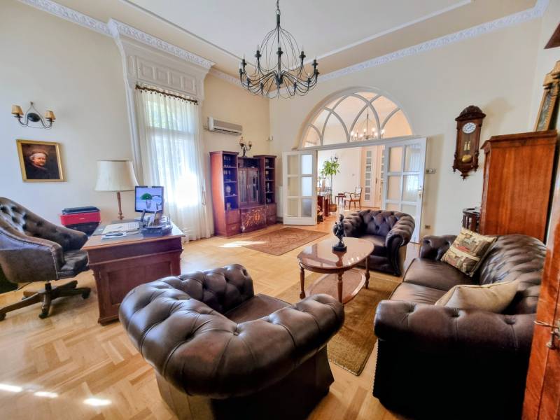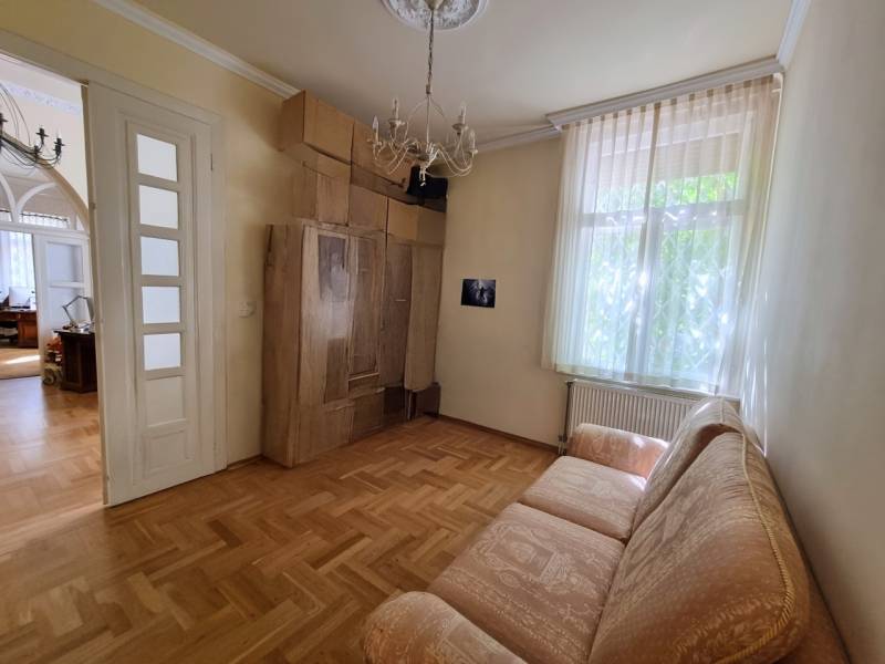 Újdonság az ingatlanpiacon, Herminamezőn, platánfák árnyékában megbújó ingatlanunk került eladósorba!A közkedvelt Amerikai úthoz közel,1918- ban épült villa épület magasföldszintjén helyezkedik el, (alaprajzon zölddel körbe jelölve látható). A ház historizáló - eklektikus stílusban épült, az építész annak idején a házat saját magának tervezte, napjainkban folyamatosan karbantartott, állapot megőrzése, illetve javítása érdekében a társasház folyamatosan törődik vele, pályázatokon indul!Egyik különlegessége, hogy a társasházba egy tekintélyes 33 nm-es külső teraszról jutunk be, majd az ingatlant egy zárt lépcsőházból közelíthetjük meg, ami a szomszéd ingatlannal kizárólagos használatban van, (a szomszéd 85 nm-es lakás szintén eladó és a kínálatunkban megtekinthető) Az ingatlan az elmúl években irodaként funkcionált, de a belső tér kialakítása alkalmassá teszi lakásként való használatra is, amerikai konyhás nappali +2 vagy kis átalakítással 3 hálószoba állhat rendelkezésre.Bejáratnál továbbhaladva rögtön megnyílik előttünk a tér, a ragyogóan napfényes nappalis konyhába érkezünk meg, valamint innen elérhető egy vendég wc, tágas dolgozó/háló aminek egy hangulatos kertre néző félkör erkélye is van, valamint helyet kapott egy külön háló és egy zuhanyzóval beépített tágas fürdőszoba is.Fűtése önnáló gáz církó, tájolása d-dnyi ezért napos, világos, klímával felszerelt, rezsije alacsony gáz és az elektromos áram költsége átlag: 20.500 ft/hó. Állapotát tekintve igényes, rendezett, a fotón látható bútorok igény esetén külön megegyezés alapján megvásárolhatóak.Parkolásra egy autónak 13,5 nm-es garázs áll rendelkezésre, ára 10 mft, amit a vételár nem tartalmaz. További tároló a pince szinten rendelkezésre áll.Remek lokációnak köszönhetően egyaránt ajánlom családosoknak, vagy vállalkozóknak is, hiszen egyaránt kiválló lakni, vagy irodai használat céljából is. A közvetlen közelben megtalálható tömegközlekedés, bevásárlási lehetőség, iskola, óvoda stb.Időpont egyeztetésés alapján megtekinthető!