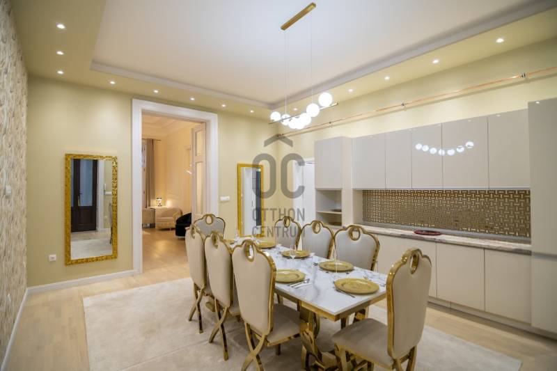 Exkluzív luxuslakás az V. kerületben, a Szervita téren – 192 m², 6 szoba, 4 fürdőszoba!Budapest belvárosának szívében, a patinás Szervita téren kínáljuk megvételre ezt a páratlan adottságokkal rendelkező, 192 m²-es, teljes körűen felújított luxuslakást.Az ár a felújított állapotra vonatkozik.A hirdetésben található képek között a kivitelező által biztosított referenciafotók segítik a tervezett stílus és minőség megismerését.Az ingatlanban:4 külön nyíló szoba2 tágas, egyterű lakótér4 elegáns fürdőszobavalamint egy erkély kerül kialakításra, ahol élvezheti a reggeli kávéját vagy az esti város fényeit.A lakás különlegessége, hogy két önálló bejárattal rendelkezik, így akár két teljes értékű lakássá is leválasztható – ideális választás többgenerációs családnak vagy befektetésre.A harmadik emeleti elhelyezkedés garantálja a napfényes tereket, míg a 2025 decemberére befejeződő felújítás a legmagasabb minőségi elvárásoknak megfelelő, modern és igényes belső kialakítást biztosít.A teljes körű vezetékcsere és felújítás után Önnek már csak a személyes tárgyait kell hoznia.Az ingatlan per- és tehermentes.Társasház:Diescher József tervei alapján ,1875-ben épült barokk, neoreneszánsz és szecessziós stílusban ,több stílusréteg kialakítva mégis harmonikus megjelenés. A homlokzat összhangban van a Szent Anna templom homlokzatával. Így vizuális egységet alkotnak a téren. A lépcsőház kifinomult kovácsoltvas korlátokkal kialakítva ,mozaik padlózattal és márvány lépcsőkkel kialakítva. A lokáció kiemelkedő: a belvárosi környezet egyszerre nyugodt és pezsgő, kiváló közlekedési lehetőségek: M1,M2 M3 Busz 9, 16,105, 210,210B, Reptéri Busz 100E, és villamosmegállók (47,48,49)pár perc sétára. Számos Étterem: Budapest, Orient Soup House, Todo, La Maison GrandKávézók: Starbucks, Bite Bakery,Egyedi igényekre szabott lakáshitelekkel állunk rendelkezésére. Bankfüggetlen Hitelcentrumunk az országban elérhető összes bank és hitelintézet ajánlatát versenyezteti az Ön számára díjmentesen.Munkatársaink nagy szakmai tapasztalattal várják Önt az előre egyeztetett időpontban akár a normál munkaidő után is.Bővebb információért és a megtekintéssel kapcsolatban hívjon bizalommal!