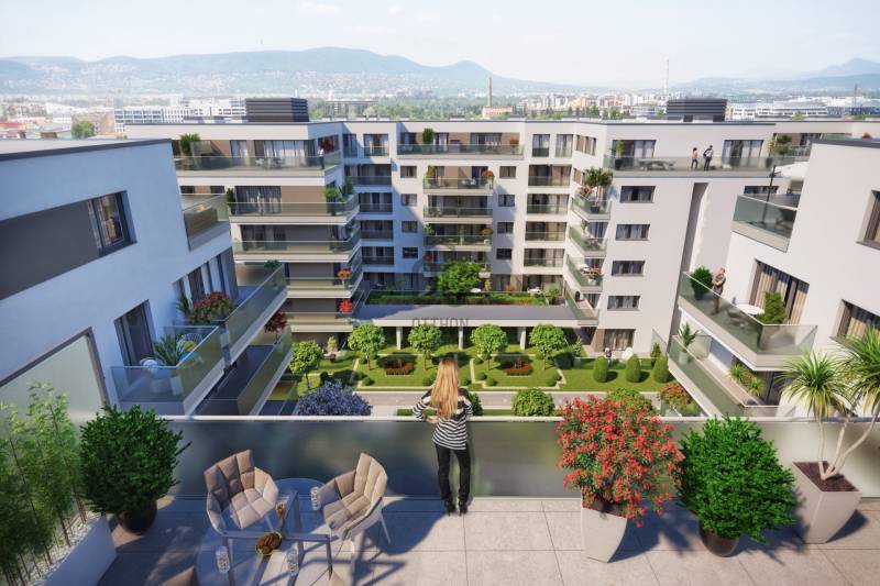 Projekt bemutatásaProjekt leírásA 147 lakásos My Garden 2 lakófejlesztés Budapest XIII. kerületének zöldövezeti részén, a Rákos-patak szomszédságában épül, ahol a modern élet és a természet harmóniája egyedülálló lakóélményt biztosít.A My Garden második ütem lakásai is magas szintű környezettudatosságot és kiemelkedő műszaki tartalmat képviselnek. Olyan fenntarthatósági megoldásokat alkalmazunk a lakóparkon, mint a megújuló energiaforrások, környezettudatos anyaghasználat, esővíz-újrahasznosítás, szelektív építési hulladékkezelés és felület hűtés-fűtés. A háromrétegű nyílászárók kiváló hő- és hangszigetelést biztosítanak, így a Le Jardin második ütemének lakásai alacsony fenntartási költségekkel és optimális komfortérzettel bírnak majd.A Váci úttól mindössze 10 percre található. A környék kifejezetten jó infrastruktúrával rendelkezik: oktatási intézményekben, bevásárlási lehetőségekben szociális-, sport- és egészségügyi létesítményekben bővelkedik a terület.A 6. emeleti penthouse lakásokból pazar kilátás nyílik a budai hegyekre, a kényelmet pedig biztosítja, hogy a nagy teraszon jacuzzi-nak kialakítható hely is található.A lakásokat átlagon felüli műszaki tartalom, energiahatékony- és gazdaságos üzemeltetés jellemzi.Környezettudatos beruházás, melynek részei a teljes mértékben- megújuló energián alapuló gépészeti megoldások,- a környezettudatos anyaghasználat,- a szelektív hulladékkezelés,- a környezettudatos vízfelhasználás,- az esővíz újrahasznosítása,- illetve a felület hűtés-fűtés.KÖZÖSSÉGI ELŐNYÖK:- közösségi nappali,- Business Corner,- közösségi BBQ hely,- fészer,- csomagpont.A fizetési ütemezés két részletben: 20% szerződéskötéskor és a fennmaradó 80% százalék a használatba vételi engedély kiadása után fizetendő a projektet finanszírozó bank felé.Átadás várható dátuma: 2027. II. negyedévTovábbi információért keressen bizalommal!