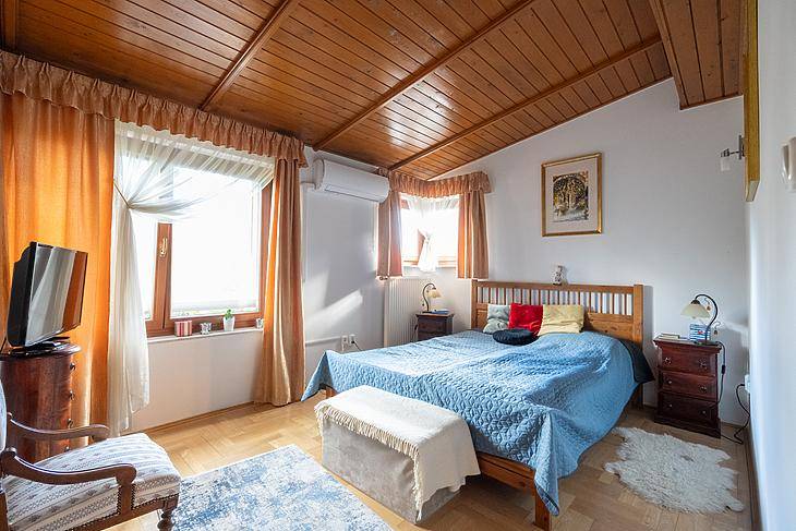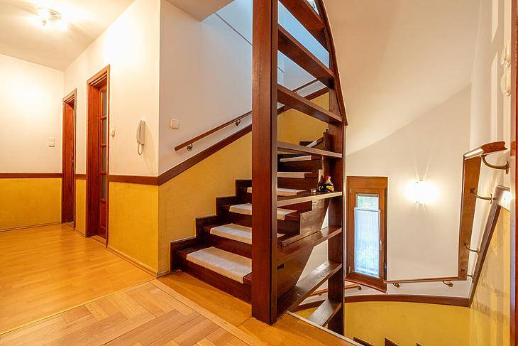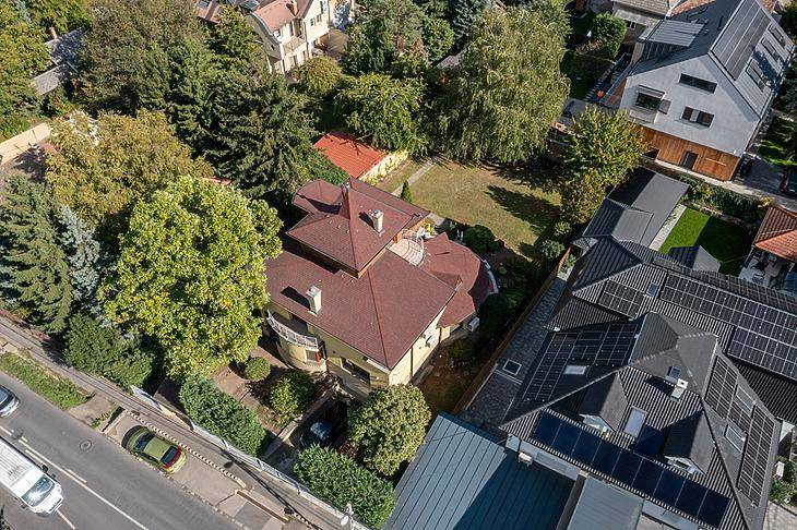 Csillaghegy szívében ELADÓ egy különleges, romantikus CSALÁDIHÁZ!Budapest egyik legkedveltebb kertvárosi részén, Csillaghegy központjában kínálunk megvételre egy igazán különleges, egyedi hangulatú, romantikus családi házat, amely 347 négyzetméteres összterületével, több szintjével és gyönyörű, gondozott kertjével tökéletes OTTHONT nyújt.A 1998-ban épült, masszív, 38 cm-es Porotherm téglából készült épületet az eredeti építtető és tervező gondos odafigyeléssel tájolta, a belső tereket pedig funkcionálisan és esztétikusan alakította ki. A ház egyik különleges eleme a szinteltolásos, körcikk alakú nappali, amely galériás kialakításával, kandallójával és nagy belmagasságával lenyűgöző központi teret biztosít – ez a ház valódi szíve.Az ingatlan 2015-től folyamatosan karbantartott és korszerűsített: az összes külső nyílászáró egyedileg gyártott, ragasztott, tömbösített fa nyílászárók 3 réteg hő- és hangszigetelő üvegezéssel; a homlokzat teljes körű hőszigetelést; a tető pedig vörösréz bádogozással ellátott kanadai zsindely fedést – mindezek alatt további 10 cm vastag szigetelés fokozza az energiahatékonyságot. A belső terek is átgondolt felújításon estek át: parkettacsiszolás, festés, szőnyeg- és lépcsőburkolatok cseréje, valamint az elektromos és gépészeti rendszerek felülvizsgálata történt meg. Illetve beszerelésre került 4 db hűtő-fűtő klíma is, ami nagy segítséget nyújt a nyári meleg időszakban.Az ingatlan négy szinten kínál kényelmet és sokoldalúságot:• Szuterén (92,76 m²): kétállásos garázs (fűtött rámpa), hobby szoba, kazánház, kamra és tárolóhelyek – ideális helyszín akár műhelynek vagy otthoni edzőteremnek.• Földszint (127,98 m² + 29,03 m² terasz): lenyűgöző nappali, dolgozószoba, tágas konyha-étkező, külön mosdó és nappali kerengő. A nagyméretű, fedett terasz a kert felé néz, tökéletes reggeli kávézáshoz vagy esti borozgatáshoz.• Emelet (101,26 m² + 3,73 m² erkély): három tágas hálószoba, gardróbszobák, mosókonyha, fürdő és külön mosdó – a család minden tagja kényelmesen elfér.• Tetőtér (25,59 m² + 4,95 m² erkély): külön beépített szoba és hangulatos tetőerkély – ideális dolgozószobának, vendégszobának vagy tiniszobának.A kert és az udvar külön figyelmet érdemel: 2015-ben teljesen megújult, dísznövényekkel, amerikai tulipánfával, japán birssel, sziklakerttel és automata öntözőrendszerrel felszerelve. A hátsó udvar csendes, intim részében grillező és tűzrakóhely került kialakításra, beton térkő sétánnyal – a baráti összejövetelek kedvenc helyszíne lehet. A gyep alá vakondháló került, így mindig rendezett, zöld környezet várja az új tulajdonosokat.A parkolás a házhoz tartozó garázsban megoldott, de az utcán közvetlenül az ingatlan előtt további három autó számára van hely.Környékről:Közelben minden olyan szolgálatás megtalálható amire szüksége lehet a mindennapokban (kisebb élelmiszer boltok, piac, éttermek, gyógyszertárak illetve strandfürdő is). Gyerekes családoknak nagyon ideális hiszen játszóterek, Óvoda, Iskola, Egyetem van a közelben.Tömegközlekedés szempontjából is tökéletes hiszen pár perc sétára található számos buszmegálló, illetve a H5-ös hév.FINANSZÍROZÁS:Banki finanszírozással is megvásárolható, melyben irodánk ingyenes tanácsadással áll rendelkezésükre!VEVŐINK RÉSZÉRE A KÖZVETÍTÉS DÍJTALAN!A beépített bútorzat a vételár részét képezi.