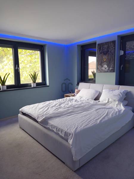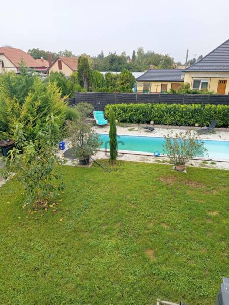Tatán, egy csendes, mégis központi elhelyezkedésű részen kínálunk megvételre egy kivételes adottságokkal rendelkező, 1990-ben épült, 230 m²-es, kétszintes tégla családi házat, amely egy 784 m²-es, teljesen körbekerített, elszeparált telken helyezkedik el.Főbb jellemzők:230 m² lakótér / kiváló elosztásFöldszint:Tágas előszobaMosókonyhaSzoba (jelenleg \"konditeremként\" funkcionál a tulajdonosoknak, szoláriummal és tusolóval ellátva, mely a vételár részét képezi)Külön WCTágas, amerikai konyhás nappali, klímával felszerelveEmelet:3 különnyíló hálószoba, mindegyik saját gardróbhelyiséggelFürdőszoba - WC3 szoba klímával ellátvaExtrák, amik emelik a komfortot:PadlófűtésElektromos redőnyök3 rétegű nyílászárók2 beállásos garázs elektromos garázskapukkalÉpített, fűthető medence (9 x 3,5 m)Automata öntözőrendszerLapos tető – zöldtető kialakíthatóTöbb autó számára parkolási lehetőségA ház kiváló műszaki állapotban van, mindössze a külső színezés van hátra. Az udvar teljesen zárt és intim, kíváncsiskodó tekintetek kizárva, ideális gyermekes családoknak vagy nyugalmat keresőknek. Nagyon kedves, barátságos szomszédokkal körülvéve.Kinek ajánljuk?Ez az ingatlan tökéletes választás azoknak, akik luxus szintű kényelmet, kiváló elhelyezkedést és igényes kivitelezést keresnek egy tágas, jól megtervezett otthonban – mindezt Tatán, a város egyik legjobb részén!Amennyiben felkeltette érdeklődését az ingatlan, további információért illetve megtekintéssel kapcsolatban várom hívását.
