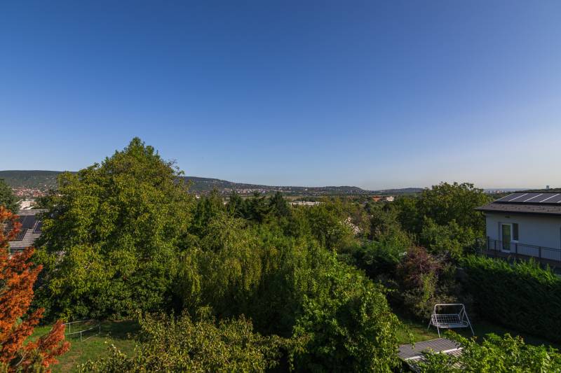 Budaörs Kamaraerőn, a hely egyik legkedveltebb, elegáns utcájában eladó egy otthonos kialakítású, 6 szobás felújított családi ház.A modern polgári stílusú ház praktikus és tetszetős belső kialakítását lakberendezői tervek alapján kivitelezték. A földszinten ízléses, kandallós, hagyományos stílusú nappalit, hozzá kapcsolódó társalgót, modern, ikea berendezéssel rendelkező konyha-étkezőt, kamrát és hatalmas, nagy ablakos világos fürdőszobát találunk. Az emeleten négy nagy méretű hálószoba (ezekből kettő terasz-kapcsolatos), világos fürdőszoba, külön WC van. Az emeleti teraszról a budaörsi panorámában gyönyörködhetünk. A lakótér alatt több helyiségből álló félszuretén/pince található, amely praktikus tárolási lehetőséget biztosít, és itt akár kondiszoba is kialakítható. A ház egy nagyobb család igényeit is kiszolgálja. A házban lévő meleg- és hidegburkolatok jó minőségűek, újszerű állapotúak. A fűtés korszerű, zárt égésterű kondenzációs gázkazánról üzemel. Mindkét lakószinten split klíma is üzemel. A ház 380V-os ipari árammal is ellátott és külön mért éjszakai árammal is rendelkezik. A tető 5 éves, a külső nyílászárók újak; a belsők újak, illetve a ház stílusát megtartva modernizálásra, felújításra kerültek. Ez az otthon remekül élhető. A házat 1170 m2-es ősfás kert öleli körbe, amely a szomszédok irányából és az utca felől is elrejtett. A gépkocsik beállóhelye a pihenőkerttől látványilag elkülönül. A kertben lévő pince és a verem ideálisak bor tárolására, a terasz és a kert pedig extra lehetőségeket biztosít a kikapcsolódásra. A tömegközlekedés kiváló: a díjmentes utazást biztosító budaörsi helyi buszjárat megállója a közelben található, a BKK járatainak megállói pedig pár perc sétával elérhetők. Az M7, M1, M0 autópályák, bevásárlóközpontok 10 perc alatt megközelíthetőek. Óvoda, iskola, művelődési ház a közelben van. A környék jó levegőjű, igazi kertvárosi hangulatú - sétálásra, kikapcsolódásra, feltöltődésre alkalmas. Vadonatúj ajánlat!További részletek és a megtekintés miatt keressen bizalommal! Hétvégén is hívhat.