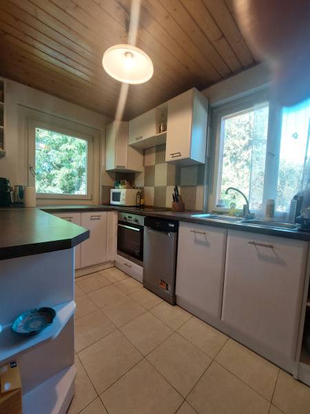 Budapest XXII. kerületében, Budatétényben vált eladóvá egy mediterrán stílusú családi ház- 1165 nm telek- nettó 155 nm lakótér- amerikai konyhás nappali + 4 hálószoba + dolgozószoba- 2 fürdőszoba + különálló WC- modern konyha felszerelt gépekkel + kamra- 4 db bejárat, így akár vállalkozás is kialakítható saját bejárattal- beépített hatalmas gardróbszekrények- egyedi hangulat, különleges légkör- a ház fából épült, egyedi igények szerint- szigetelet, műszaki dokumentáció rendelkezésre áll- gázcirkó fűtés- gondozott, parkosított kert gyümölcsfákkal, bokrokkalA ház zsákutcában található, nincs átmenő forgalom. Mellette zöld terület, patak található. Csendes, kertvárosi környezet, közelben bevásárlási lehetőségek, kiváló közlekedés. Kutyasétáltatás, sportolási lehetőség egy karnyújtásnyira.Ha egyedi hangulatú családi házra vágysz....Ha szükséged van több szobára, akár a gyerekek, akár home office miatt....Ha nem akarsz a felújítással bajlódni....Gyere el és szeress bele! Ide csak költözni kell!Ha nem a tucatingatlanok érdekelnek.....