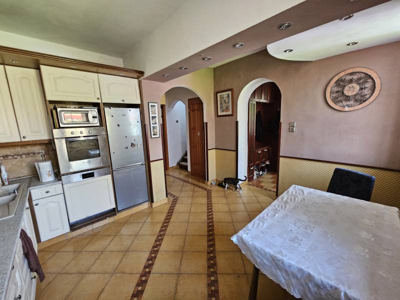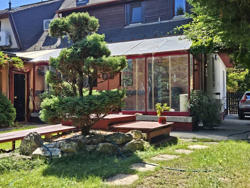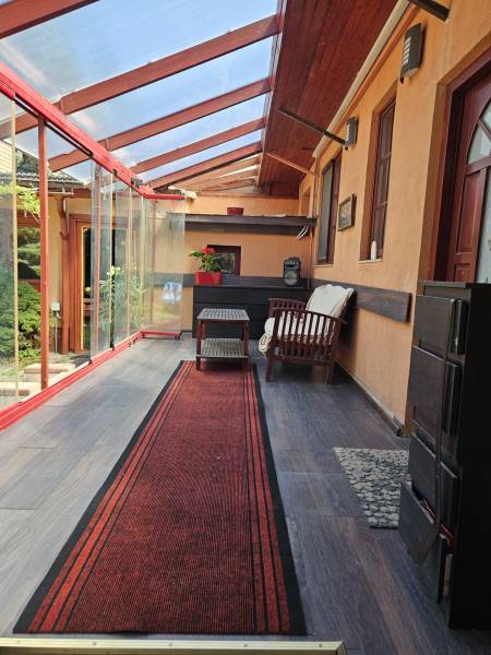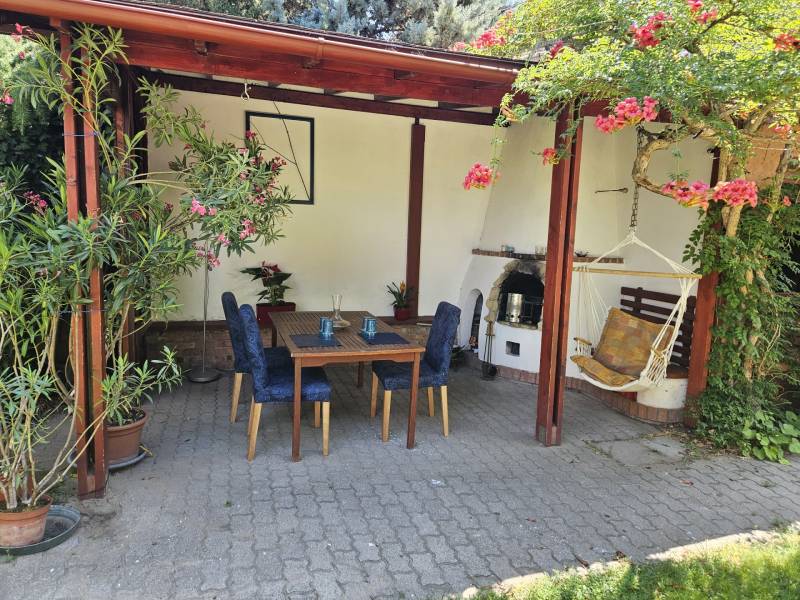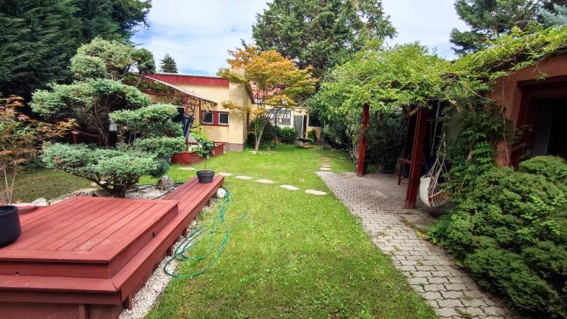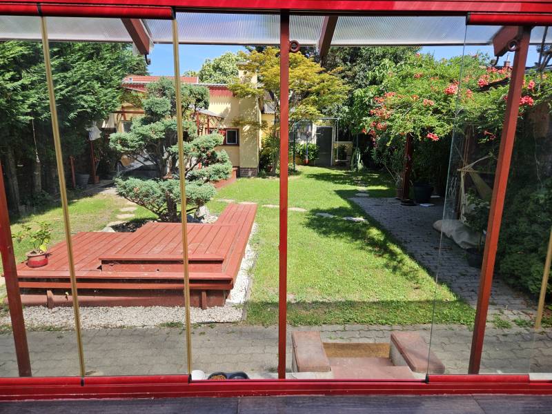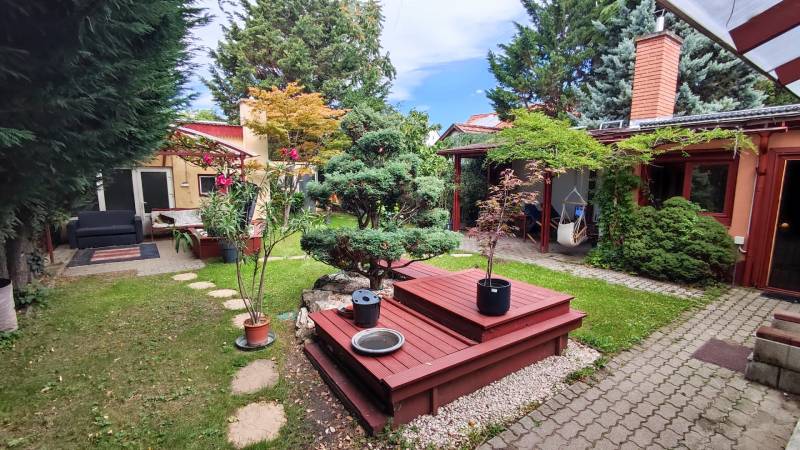 Önálló helyrajzi számú 117 m2-es hőszigetelt családi ház + 26 m2-es garzon, fedett terasszal, szaunával, kondirésszel, borospincével és fedett grillezővel, 406m2 telekkel, parkosított kert.A fedett teraszról előtérbe lépve különálló wc található. A konyha-étkezőn továbbhaladva jutunk el a lépcsőházon át a nappaliba és egy egész szobába. Nappaliból fürdő-wc nyílik. Tetőtérben egy közlekedőből nyílik 2 félszoba és egy egész szoba, valamint a padlófűtött fürdő-wc. Burkolatai jó állapotúak. Nyílászárói jó minőségű fa ablakok, hőszigetelő üvegezéssel.- A+ energetikai besorolás- napelem 6,75kWh- napkollektor+puffertartály- új kondenzációs kazán- radiátor+padlófűtés- 3 db klíma- alacsony rezsiNyugodt, kisforgalmú utca, metró, bevásárlóközpontok, óvodák és iskolák pár perc sétára. Gondozott, belátásmentes kert automata öntözőrendszerrel (ehhez külön vízóra), gépkocsi-beállóval.Kiváló választás családoknak és többgenerációs otthont keresőknek!