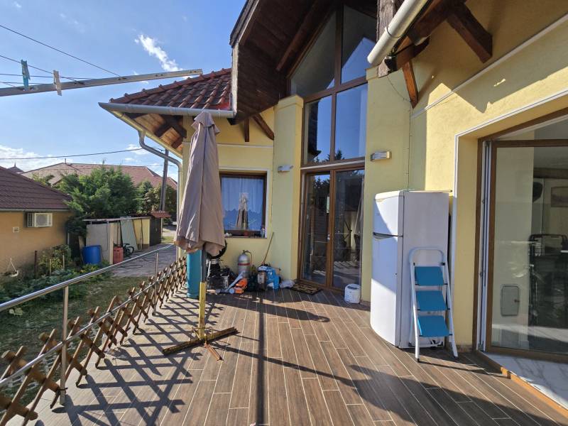Veresegyház csendes, mégis kiválóan ellátott környékén kínálunk eladásra egy tágas, 160 nm-es családi házat, amely ideális választás lehet családok számára, akik a nyugalmat és a kényelmet keresik. Az ingatlan elhelyezkedése különösen előnyös, hiszen a város központja mindössze néhány perces sétára található, ahol boltok, éttermek és közszolgáltatások széles választéka várja Önt. A környék biztonságos, barátságos légkörével pedig ideális otthont biztosít gyermekes családok számára. A ház 687 nm-es telken helyezkedik el, amely elegendő teret biztosít a szabadidős tevékenységekhez és a kertészkedéshez. Az ingatlan három fürdőszobával rendelkezik, így minden családtag kényelmesen elfér, és a tágas nappali tökéletes helyszínül szolgál a közös családi programokhoz. A nappali világos, napfényes, ami még inkább fokozza az otthon meleg hangulatát. Az erkély, amely 15 nm-es, csodás panorámát kínál, ideális helyszín a reggeli kávézáshoz vagy az esti pihenéshez. A ház állapota átlagos, de kiváló lehetőséget kínál arra, hogy saját ízlésére szabja. A vegyes fűtési rendszer és a klíma biztosítja az otthon kellemes hőmérsékletét évszaktól függetlenül. A környék ellátottsága kiváló, a közlekedési lehetőségek is kedvezőek: a tömegközlekedés könnyen elérhető, így Budapest központja is gyorsan megközelíthető, ami különösen előnyös lehet ingázók számára. Veresegyház nemcsak a családosok, hanem a befektetők számára is vonzó, hiszen a környék folyamatosan fejlődik, és a jövőbeli értéknövekedés szempontjából is kedvező lehetőségeket kínál. A szauna pedig egy extra kényelmet biztosít, ahol a nap végén ki tudja pihenni a fáradalmait. Amennyiben felkeltette érdeklődését ez a nagyszerű ingatlan, ne habozzon kérdésekkel keresni bennünket! Szívesen állunk rendelkezésére, hogy segítsünk Önnek a legjobb döntés meghozatalában, és hogy megtalálja álmai otthonát Veresegyház szívében. Az ingatlan nemcsak egy ház, hanem egy lehetőség, hogy egy új, boldog életet kezdjen el családjával.Udvari fedett beállón napelem, kamerarendszer (4kamerával), 50 méteren belül buszmegálló - ingyenes helyi buszjárattal!További információért, megtekintésért, keressen bizalommal!