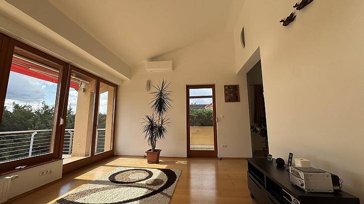 Eladása kínálunk egy újszerű, tágas, 142 nm-es, belső kétszintes lakást Sasadon. Az ingatlan egy kétlakásos, 2007-ben épült, 10 cm-es dryvittel szigetelt ház felső szintjén helyezkedik el. A 24 nm-es nappalin kívül a lakásban 3 hasonló méretű (14 nm) hálószoba található, illetve igény szerint a felső alaprajznál feltüntetett dolgozószobát át lehet alakítani egy teljes értékű 19 nm-es hálószobává. A nappalit, az előteret és a konyha/ étkezőt, középen a szinteket összekötő lépcső osztja meg, melynek aljába egy 2 nm-es kamra is kialakításra került. Az ingatlanban két fürdőszoba található. A nappaliból nyílik egy 15 nm-es délnyugati fekvésű, gyönyörű panorámával rendelkező, félig fedett, motoros árnyékolóval ellátott terasz, illetve szintúgy a nappaliból közelíthetjük meg az oldalsó, nyugati fekvésű 5 nm-es, teljesen fedett erkélyt. Központi kondenzációs kazán látja el fűtéssel és melegvízzel mindkét lakást, amelyek padlófűtéssel és külön-külön egyedi mérővel felszereltek. Található két légkondi is az ingatlanban. Az egyik az alsó szint nappalijában, amely 2024-ben lett felszerelve, a másik pedig a galéria hálószobájában, amely 2011 óta biztosítja az optimális hőmérsékletet. A déli fekvés miatt a lakás bővelkedik a napsütésben.A lakásban DSC riasztórendszer üzemel. Ezen kívül a piceszinten található a két beállásos garázs (36,5 nm), melyből az egyik beálló a lakáshoz megvásárlandó. Ára 10 M Ft. Ezt a ház mellett futó, fűthető lehajtóról lehet elérni autóval. Található még lent egy saját 23 nm-es tároló/ garzonlakás, melynek ára 15 M Ft. Ez jelenleg egy lakható kislakásként üzemel, ugyanis egy 4 nm-es fürdőszoba is kialakításra került benne. Külön megközelíthető, így a jövőben ennek a kiadása is opció lehet. Illetve a gépészeti helység és a grillterasz pedig közös használatú. A 300 nm-es hátsó kert közös. A dús növényzetű kertet automata öntözőrendszer locsolja, amelyet egy 15m3-es esővízgyűjtő is táplál. Itt még kialakításra került egy fészer is, amely a kerti eszközök tárolására alkalmas. Az elektromos hálózat szintenként (lakásonként) külön mérőórával van ellátva, a garázsszinten a teljes gépészethez és a teljes szint áramigényéhez napelem biztosítja az energiát.Világos, ablakos lépcsőház köti össze a ház három szintjét, amelynek középső szintjén van a bejárat és innen nyílik a földszinti lakás. Az első emeletről az emeleti lakás, a legalsó szintről pedig a kazánház és a közlekedő folyosó érhető el.Közlekedés szempontjából a nem messze található Sasadi utat érdemes használni, ahol az 53-as jelzésű autóbusszal 5 perc alatt elérhetjük a Kelenföldi vasútállomást. Ezen kívül a közelben a 8E, 108E, 139 buszok, illetve az 59-es villamos.A közelben található: iskola, óvoda, bolt, pékség, gyógyszertár, kozmetika, cukrászda. További kérdés esetén vagy időpont egyeztetés céljából, keressen minket bizalommal.Az ingatlan banki finanszírozással is megvásárolható, kérje ingyenes konzultációnkat.Vevőink részére a közvetítés díjmentes!
