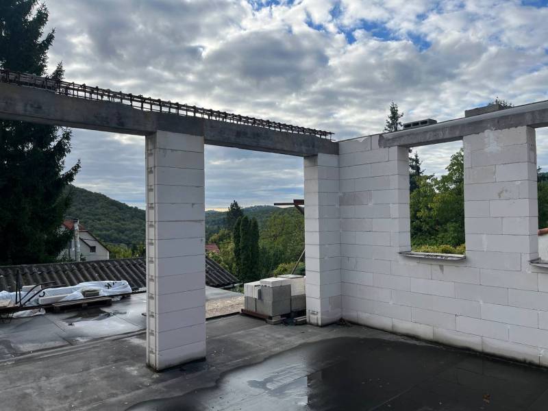 Nagyon jó lehetőség egy barátságos otthon megteremtéséhez! :)Solymár csendes utcájában, csodálatos panorámával rendelkező telken eladó egy épülőfélben lévő családi ház.Az igatlan aszfaltos útról közelíthető meg.Az utcafronton egyállásos garázs, de a kertbe is van kocsibeállási lehetőség.Az épület rendkívül precízen lett elkezdve, ügyelve minden apró részletre.A lakótérben 2 egész és 2 félszoba lett tervezve tágas, világos teraszkapcsolatos nappalival.A szuterén a teljes épület alatt terül el, hátsó fele jelenleg műhely, az utca felé lévő része később akár garázsként is használható. A falazat 2025 év során készült viablokk elemekből , melynek adottságai meghaladják az Ytong falazóelem tulajdonságait. .A teraszról bámulatos panoráma nyílik Budapestig.Az épület teljesen körbenapozott, kertje hátul parkos, madárcsicsergős, romantikus, ősfás.A ház és az utca közötti területen egy kiváló állapotú, fűthető, lakható faház áll, mely a ház befejezése során is jól hasznosítható.Víz, villany, csatorna a telken belül.A teljes tervdokumentáció a vevő rendelkezésére áll. A fűtést hőszivattyúval tervezték.Az utca minimális forgalmú, a kék busz megállója gyorsan elérhető, a vasútállomás pár perc kocsival.Ha nem taltált szép helyen telket érdemes ennek a praktikus, szép háznak a befejezésén is elgondolkodnia!Jöjjön el, szeressen bele!Lengyel Katalin06 20 2515791