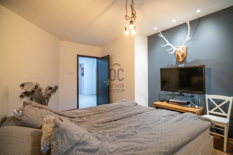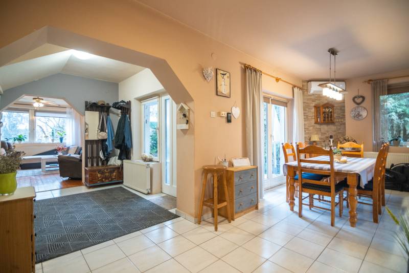 Sóskút Rózsadombján – Tágas, napfényes otthon extra lehetőségekkel!Eladó egy 200 m²-es, 5 szobás, kétszintes családi ház 642 m²-es telekkel, csendes, átmenő forgalomtól mentes zsákutcában, Budapesttől mindössze néhány percre!A ház főbb előnyei:• 5 külön nyíló szoba + tágas nappali-étkező-konyha• Világos, nagy ablakos, barátságos terek• Kandalló + gázcirkó + hűtő-fűtő klíma – ideális hőérzet egész évben• 20 m²-es hangulatos terasz és gondozott, intim kert• Garázs aknával + további kényelmes parkolás a ház előtt• Kiváló állapotú épület – masszív falazat, minőségi tető• Csend, természet, friss levegő – és közben gyors elérhetőség az M7-re és az Etele térreA házhoz tartozik még egy külön, 100 m²-es félszuterén szint, amely kiválóan használható:✔ Otthoni vállalkozáshoz / szalonhoz ✔ Külön bejáratú bérbe adható lakrésznek✔ Hobbiszobának vagy edzőteremnekVagy akár többgeneráció együttélésére is lehetőséget biztosít. Sóskút előnyei:• Biztonságos, rendezett település• Óvoda, iskola, orvosi rendelő, boltok helyben• Lovardák, erdős túraútvonalak pár perc sétáraEz az otthon többet ad, mint egy ház:Életteret + munkateret + pihenést egyben.Jöjjön el és nézze meg – itt azonnal érezni fogja a hely hangulatát!Megtekintés rugalmasan, előre egyeztetve.