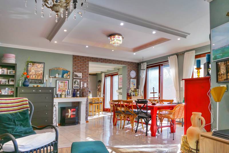 Szentendrén, kiválóan megközelíthető, gondozott, lakóparki környezetben található ez a tágas, világos, meleg, családias hangulatú otthon.Az ingatlan lakóparkon belüli elhelyezkedése is kedvező, mivel szélső ház, viszonylag nagy telek tartozik hozzá, illetve van garázs is.Az emeleti hálószobák mérete megengedné, hogy akár két szobát alakítsanak ki belőlük.Olyan, akár többgyermekes családoknak ajánlanám, akiknek fontos a biztonság, illetve a gyerekek önálló közlekedése az otthonuk és az iskola között.