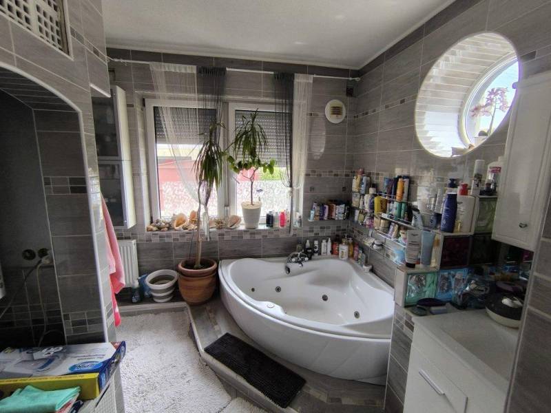 Érd Parkvárosának egyik átmenő forgalomtól mentes utcájában egy olyan ideális élettér kerül kialakításra, amely méretéből adódóan egy nagyobb család együttéléséhez, vagy akár a két lakrész különválasztásával két generáció összeköltözéséhez is megfelelő.A ház építés, a kert rendezés alatt áll!Az alsó szint lakható, nagy nappali, konyha, két háló, nagy fürdő, teraszok.A felső szint teljes egészében kialakításra vár. A feljárat az emeletre még megoldható akár belső, akár külső megközelítéssel is, így a fenti lakrész külön-bejáratúvá is tehető.Kialakításra vár két szint, két lakótér, összesen 6 szoba, 2 fürdő, 1+1 konyha, teraszok.Sőt!A 800 m2-es telek elrendezése szerencsés, kihasználhatósága remek, nyaralóként is tökéletes! A 33 méteres utcafront két külön bejárattal, két nagy kapuval rendelkezik. Baloldalon a 2 szintes, 220 m2-es családi ház, 60 m2-es pinceszinten kialakított garázzsal, a jobb oldalon a nyaraló-terület épített medencével, nyári konyhával, melléképülettel, kerti tóval, grillezővel.Alapterület 110 m2, a két szint 220 m2, plusz garázs 60 m2.38-as porotherm tégla, 15 cm külső szigetelés, Saunier Duval kombi cirkó, radiátorok és padlófűtés kombinációja. Látványos, funkcionáló kandalló, továbbá modern hűtő/fűtő klíma.Az érdi ingatlanpiaci környezetben vizsgálva, a méreteket és lehetőségeket számba véve ennek az ingatlannak a forgalmi értéke 172 Millió Ft körül várható. A várható építési, fejlesztési és javítási igények figyelembe vételével került megállapításra a jelenlegi kínálati ára.Érdeklődése esetén állunk rendelkezésére! Jöjjön, nézze meg!MIK azonosító: 3685809