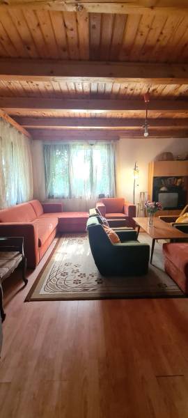Hangulatos vidéki ház!Székesfehérvártól 11 km-re, Sárszentmihályon, buszmegállótól 700 m-re, 880 m2-es szép, jó kialakítású részben panorámás telekre, az 50-es években épült, a nyolcvanas években bővített egyszintes, jellegzetes, nappali kétszobás, 75 m2 hasznos lakóterű, 20m2-es terasszal, DK-i tájolású családi ház, pincével, eladó.Az utcáról az udvaron át megközelíthető házba, a fedett teraszról léphetünk, az előtérbe, melyből a nappali egy szoba és a fürdőszoba érhető el. A szobába belépve pedig a harmadik szobát érjük el.A ház az 50-es években épült vályogból, fa födémmel.1980-ban a házat bővítették, az akkori kornak megfelelően rendbe rakták, modernizálták.A ház egyik fele téglából a másik vályogból épült, fa nyílászárokkal, cserépfedéssel, a fűtését cserépkályha biztosítja, a meleg vizet villanybojler.Közművek közül a víz, villany, csatorna bevezetésre került, a gáz az utcában megtalálható.A szobákban laminált parketta, a többi helyiségben járólapokat helyeztek el.A ház állapotát tekintve felújítandó, de remek alap egy szép otthon kialakítására, amit a ház elrendezése lehetővé tesz. KörnyékDimbes-dombos, csendes, családi házas övezet, központhoz, főúthoz, autóbusz megállóhoz közel.MegközelíthetőségTömegközlekedéssel is könnyen megközelíthető a helyijáratos autóbusszal, a buszmegálló kb. 700 m-re van.Kiváló adottságú ház, szép helyen, hívjon, és nézzük meg, tetszeni fog!sarszentmihalyhaz, olcsonhaz, kerteshaz, 3szobasház, felujítandohaz,