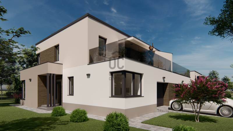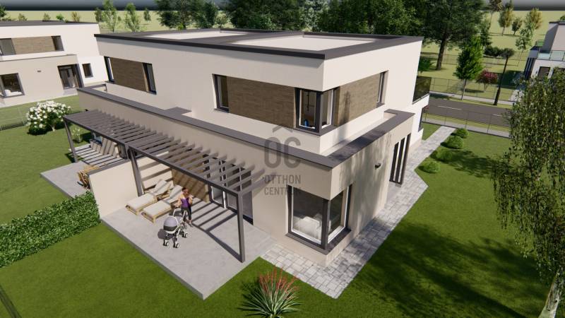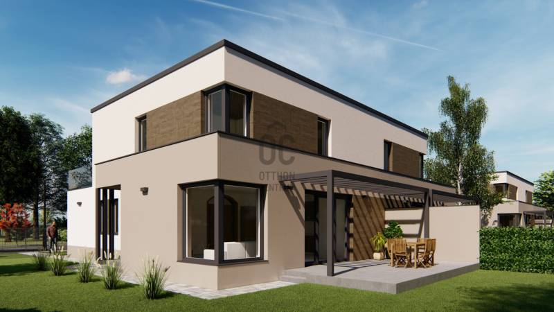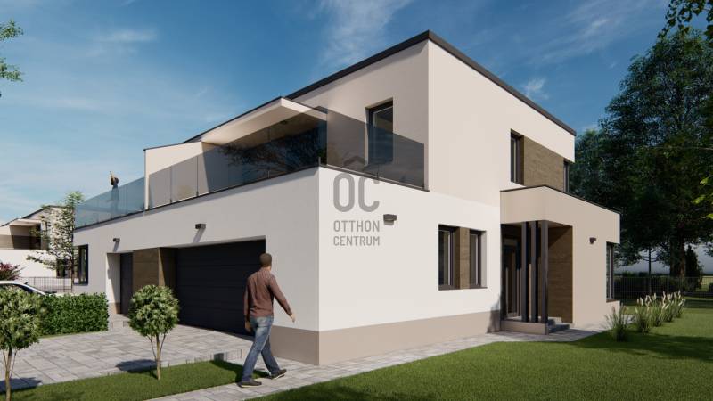 Képzeljen el egy otthont, ahol a modern építészet és a természet harmóniája találkozik. Debrecen-Józsa legújabb lakóparkja különlegessége, hogy a terület korábban botanikus kertként működött, ennek varázslatos hangulata ma is átjárja a környéket. A gazdag növényzet és a gondosan parkosított környezet biztosítja a természet közelségét és a mindennapok nyugalmát.A lakópark csendes utcáiban a gyerekek biztonságosan játszhatnak, biciklizhetnek, miközben a család a zöld környezet nyugalmát élvezheti.Alapterület: 178 m²Lakótér: 91 m²Szintek: földszint + emeletSzobák száma: 3 szoba + nappaliGarázs: két autónak, közvetlen belső kapcsolattalTelekrész: 450 nmElrendezés- A modern, lapostetős ikerház átgondolt alaprajzzal rendelkezik:- Földszint: világos nappali étkező-konyhával és kamrával, egy hálószoba, fürdőszoba, külön WC, háztartási helyiség, előszoba, kétállásos garázs, valamint tágas terasz.- Emelet: további két hálószoba, két fürdőszoba, közlekedő, és nagy erkély.Műszaki tartalom (kiemelt jellemzők)- Szerkezet: Porotherm 30 N+F tégla, 15–20 cm hőszigeteléssel- Tetőszerkezet: lapostető, egyenes rétegrenddel, kavicsolt felülettel- Nyílászárók: 6 légkamrás, 3 rétegű üvegezéssel (Uw=0,9 W/m²K), kívül antracit, belül fehér- Árnyékolás: motoros redőny előkészítés- Garázskapu: motoros, hőszigetelt szekcionált kapu, 2 távirányítóval- Burkolatok: laminált padló 7.500 Ft/m²-ig, kerámia 10.000 Ft/m²-ig választható- Fürdőszoba felszereltség: Hansgrohe csaptelepek, Wellis szaniterek, Macryl Eco kád, Ravak zuhanyfal- Fűtés-hűtés: levegő-víz hőszivattyú, padlófűtés + mennyezethűtés, nappaliban klíma- Szellőzés: hővisszanyerős szellőztető rendszer- Biztonság: komplett riasztórendszer előkészítveExtrák- Körbekerített lakópark, úszókapuval, kizárólag lakók részére- Biztonságos magánutca, ahol a gyerekek felszabadultan játszhatnak- Tágas terasz és erkély, ideális családi és baráti összejövetelekhez- Új építésű, energiatakarékos otthon modern gépészettel- Egyedülálló zöld környezet a volt botanikus kert helyénHa Ön is egy modern, energiatakarékos otthonra vágyik a természet ölelésében, biztonságos, családbarát környezetben, ne habozzon!Hívjon most, és biztosítsa be helyét Debrecen-Józsa legújabb lakóparkjának különleges otthonai között.MAGASTETŐS KIVITELBEN IS VÁLASZTHATÓ: 196.900.000 HUF.
