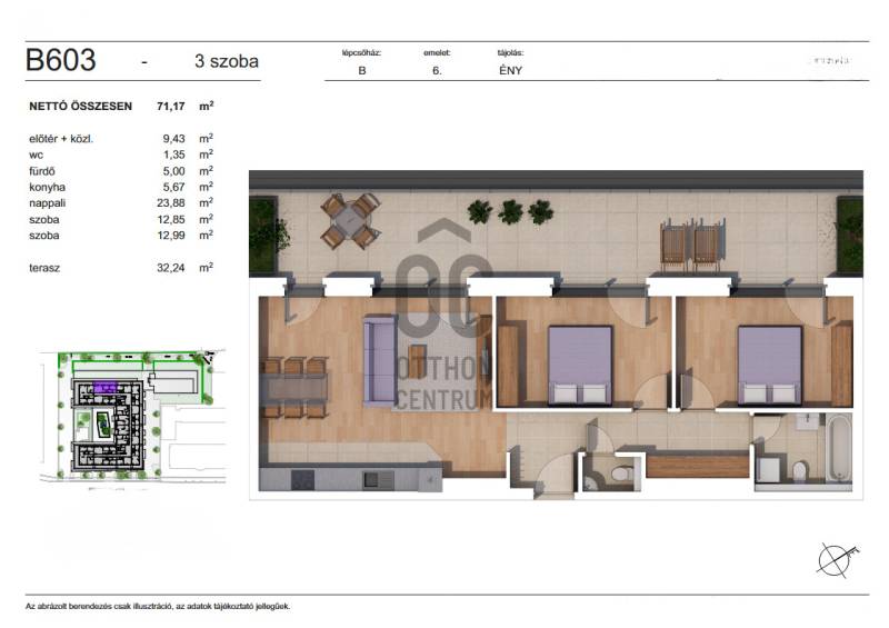 Az ingatlan nettó alapterülete 71,17 m² + 32,24 m² terasz.Projekt bemutatásaEladó lakások Zugló szívében! A modern, világos, élhető lakások minden igényt kielégítenek.A belváros percek alatt elérhető, mind autóval, mind tömegközlekedéssel.Az épület különleges homlokzatának köszönhetően kertes lakások is elérhetők, az épületek aljában pedig üzlethelyiségek kerülnek kialakításra.FŐBB JELLEMZŐK:- korszerű épület, kiépített kamerarendszer- kiváló elhelyezkedés: az Erzsébet Palace Zugló központjában található, ahol minden kényelmi szolgáltatás könnyen elérhető.- napfényes lakások: minden lakás benapozott, így természetes fényben fürdőzhet. - kiváló közlekedés: szuper tömegközlekedési lehetőségek állnak rendelkezésre, hogy bárhová könnyedén eljuthasson. - széles körű lakáskínálat: a modern kialakítású lakások nappali+1 szobás, illetve nappali+2 szobás elrendezésben érhetők el. Néhány földszinti lakás kertkapcsolattal is rendelkezik, automata öntözőberendezéssel. - üzlethelyiségek: a földszinten számos üzlethelyiség kap helyet, hogy minden szükséges szolgáltatás a közelben legyen. - parkolási lehetőségek: belső és külső parkolók biztosítják az autók kényelmes és biztonságos elhelyezését. - parkosított környezet: a belső udvar gondosan kialakított, növényekkel és fákkal díszített zöld oázis, amely nyugalmat és kikapcsolódást nyújt. - belső bejáratok: a főbejáratok a belső udvarról nyílnak, biztosítva a lakók privát szféráját és biztonságát. Főbb műszaki tartalom:- energiatakarékos, környezetbarát mennyezeti hűtő-fűtő rendszer- egyedi, modern burkolat -és szaniterválaszték- igény szerint belső design tervezés- okos rendszer- garázs és tároló különböző méretekben - elektromosautó-töltési lehetőségA KÖRNYÉKBelvárosi ellátottság, külvárosi nyugalom.- Kolozsvár utcai piac 400 méter, sportpálya 500 méter, cukrászda, Tesco 200 méter- kávézó, pékség, fodrászat, masszázs, kozmetika szolárium a ház előtt közvetlenül- 100 méterre busz (5, 973, 973A) és villamosmegálló (62, 62A, 69)- Városliget 12 perc 5-ös busszal- Bosnyák téri piac 12 perc busszal (124, 125, 125B)Ne hagyja ki ezt a kivételes lehetőséget, hogy egy ilyen exkluzív lakóparkban éljen! Az Erzsébet Palace lakásai tökéletes otthont nyújtanak mindenkinek, aki értékeli a kényelmet, a modern dizájnt és a kiváló elhelyezkedést. Érdeklődjön most, és találja meg itt álmai otthonát!Tervezett átadás: 2025. III. negyedévSzakaszos fizetési ütemezéssel! Garázs és tároló vásárolható!- garázs: normál 6 MFt, nagy 9 MFt, csökkentett 5 MFt- tároló: 5 m2 -nél kisebb: 950 000 Ft/m2, 5m2-nél nagyobb: 900 000 Ft/m2
