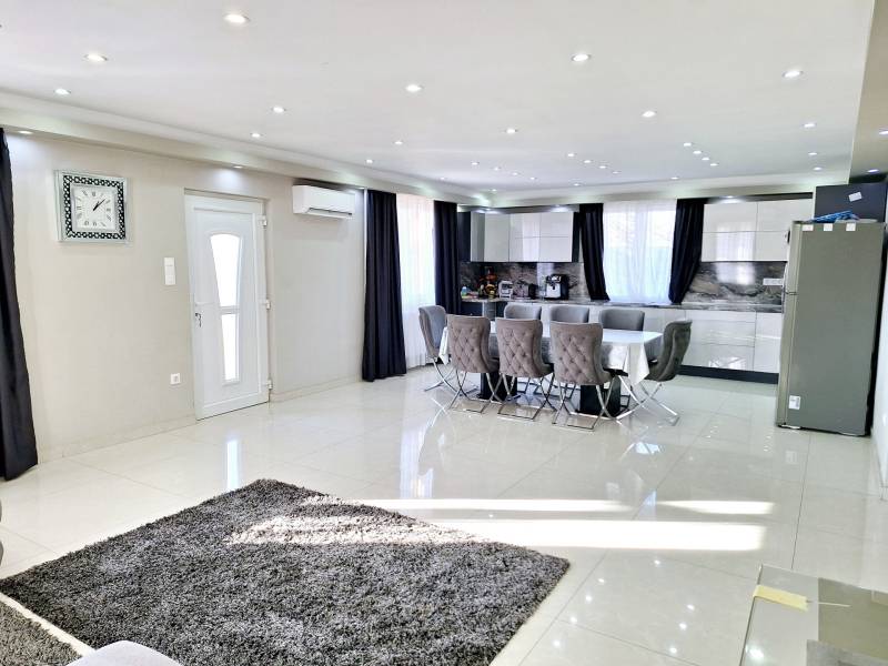 Ritka lehetőség: 4496 m²-es telek, többfunkciós hasznosítással, állattartásra is kiváló adottságokkal.FŐBB JELLEMZŐK:• Telek mérete: 4496 m² – tágas, jól kihasználható terület, ami számos lehetőséget rejt magában.• Főépület: 106 m² alapterületű, egy szintes, modern stílusban teljes körűen felújított családi ház.• Terasz: 22 m²-es fedett terasz, ideális családi vagy baráti összejövetelekhez.Helyiségek:• Tágas, 35 m²-es nappali.• 21 m² étkező, modern konyhával.• 2 különálló, kényelmes hálószoba.• Kádas fürdőszoba.• Kazánház.Fűtés és hűtés:• Vegyes kazán és klímaberendezés biztosítja az év minden időszakában a kellemes hőmérsékletet.• Biztonság: Kiépített kamerarendszer és elektromos kapu.Kerti vízellátás:• Fúrt kút a kert és az állattartási szükségletek ellátására.EXTRA FUNKCIÓK ÉS ÉPÜLETEK:• Nyári konyha: Grill sütővel és tűzrakó hellyel, amely ideális a szabadtéri sütögetésekhez és közösségi programokhoz.• Különálló garzonlakás: 30 m²-es, teljesen új állapotú egyszobás lakás, amely vendégházként, bérbeadásra, vagy családi használatra is tökéletes.• Tárolás és parkolás:• 60 m²-es lemezépület, amely 3 autó befogadására alkalmas, valamint tárolási/raktározási célokat is szolgál.• Állattartási lehetőség: A jelenlegi tulajdonos lovakat tart, így az állattartáshoz szükséges infrastruktúra már kiépített.HASZNÁLATI LEHETŐSÉGEK:• Az ingatlan adottságai miatt kiváló lehet:• Lovardaként vagy egyéb állattartási tevékenységhez.• Kutyapanzióként vagy állatmenhelyként.• Magánlakásként, akár nagycsaládosok számára.• Vállalkozási célokra, ahol a tágas terület fontos szempont.• Egyéb gazdasági célú hasznosítás (pl. kertészet).ELHELYEZKEDÉS• Csepel egyik csendes, mégis könnyen megközelíthető részén található.• A telek nagysága és elhelyezkedése garantálja a magánélet védelmét és a zavartalan életvitelt.KINEK AJÁNLOM?• Családoknak, akik modern, kényelmes otthonra vágynak tágas térrel.• Állattartóknak, akik már kiépített infrastruktúrát keresnek.• Befektetőknek, akik gazdasági célú ingatlanhasznosításban gondolkodnak.Ez az ingatlan több, mint otthon – egy életstílus és egyedi lehetőségek tárháza!Keressen bizalommal további információért vagy a megtekintés időpontjáért!