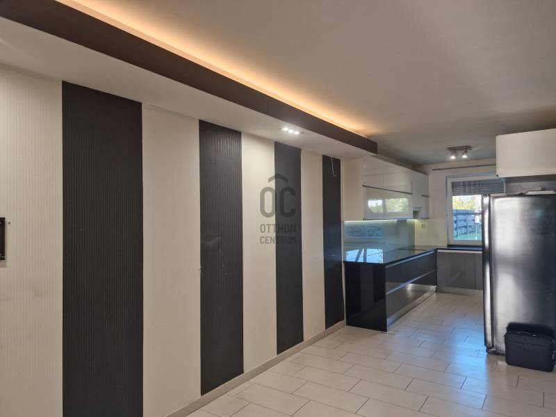Ha olyan otthonra vágyik, amely egyszerre modern kialakítású, energiatakarékos működésű és nyugodt, családbarát környezetben helyezkedik el, akkor érdemes megismernie ezt a Liget lakóparkban található sorházat.A 120 m² alapterületű, kétszintes ingatlan a legkorszerűbb műszaki megoldásokkal épült, így hosszú távon is biztonságos, gazdaságos és értékálló választást jelenthet családok, párok, illetve befektetők számára.Az ingatlan főbb jellemzői:- Alapterület: 120 m², kétszintes kialakítás- Telek: 198 m² saját telekrész + 137 m² önkormányzati hátsó telekrész, amely igény szerint a saját területhez csatolható – alkalmas kert bővítésére, pihenőkert vagy játszótér kialakítására- Helyiségek: nappali, több hálószoba, két fürdőszoba, különálló WC, tároló, garázs- Konyha: magas minőségű, gránit munkalapos, teljesen gépesített, beépített konyhabútor- Fűtés és hűtés: radiátormentes rendszer – padló- és falfűtés, valamint falfelületi hűtés, amelyet saját kondenzációs kazán működtet. Az energiatakarékos megoldás egész évben optimális hőérzetet biztosít, miközben a belső terek hasznosíthatóságát is maximalizálja.További előnyök:- Saját garázs- Csendes, rendezett környezet- A közelben iskola, óvoda, bevásárlási lehetőségek és kedvező közlekedési adottságokAmennyiben olyan ingatlant keres, amely modern kialakítással, kiváló műszaki állapottal és bővíthető kerttel rendelkezik, ez a sorház a Liget lakóparkban megfelelő választás lehet.További információért és megtekintési lehetőségért kérem, keressen bizalommal telefonon.