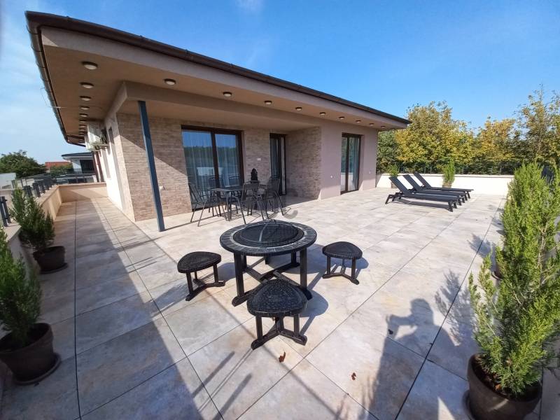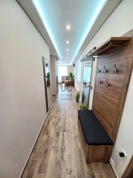 Debrecenben a Nagyerdő mellett a Nyulas városrészén, új építésű lakóparkban, újonnan épült, társasház nappali+ 3 hálószobás Penthouse lakása kiadó.Minőségi kivételezés mellett nagy hangsúly kerül az esztétikus megjelenésre is.Társasház paraméterei:- frekventált elhelyezkedés, elegáns környezet- lifttel rendelkezik,- 6 lakásos kis lakóközösség- teremgarázs az alsó szinten- közös társasházi kert kerül kialakításra- fűthető gépkocsi felhajtóA lakás paraméterei:- igazi luxus életérzés, egyedüli lakás a 2. emeleten, ezért Ön élvezheti otthonában a közvetlen lift kapcsolatot, melyet csak a jogosutak használhatnak- 98 nm hasznos alapterülethez tartozik 9 nm fedett terasz és 104 nm - s panorámás tetőterasz- terasszal közvetlen kapcsolatos, tágas világos nappali étkezővel és konyhával- 3 hálószoba melyből egy saját fürdőszobával rendelkezik, kettő pedig közvetlen kijárattal a teraszra- külön fürdőszoba káddal, zuhanyzóval- magas minőségű, hidegburkolatok a lakás minden részén- 3 rétegű hőszigetelt műanyag nyílászárók, melyek motoros alumínium redőnnyel és rovarhálóval lettek ellátva- padló fűtés az egész lakásban mely gázkazánról üzemel,- hűtés és kiegészítő fűtési lehetőséget a 4 db GREE hűtő-fűtő klíma melyhez H- tarifa tartozik- modern megoldások a mennyezeti világítás kialakításánál- telefonról is vezérelhető motoros alumínium redőnyök- a terasz száraz burkolattal ellátott, kiváló vízelvezetési megoldás.Ugye máris birtokba venné, ne habozzon hívjon és nézze meg személyesen!Szerződéskötéshez: 2 havi kaució és egy havi lakbér szükséges.Debrecen, Kiadó, Luxus, penthouse, terasz, erkély, lakás, bútor, új, prémium,