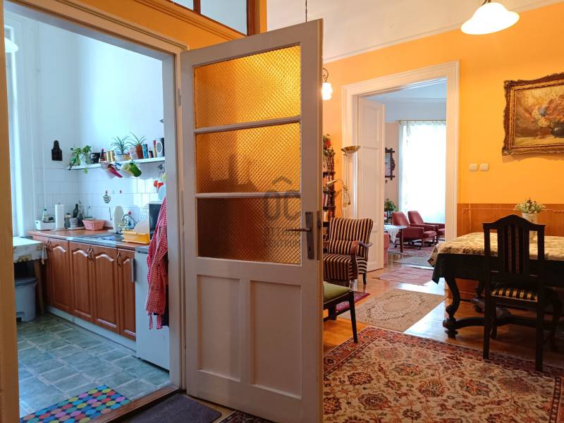 Debrecen szívében, a Piac utcán kínálkozik lehetőség egy 118 m²-es, különleges adottságokkal rendelkező polgári lakás megvételére. A 2. emeleten található ingatlan 360 cm-es belmagasságával, eredeti parkettás padlóival, nagyméretű ablakain beáramló bőséges természetes fényével és elegáns hangulatával a klasszikus városi életérzést idézi meg. A nappalihoz kapcsolódó erkély a Piac utcára néz, kovácsoltvas korláttal és hangulatos kilátással, ahonnan akár otthonából élvezheti a Virágkarnevál látványát. A lakás jelenlegi elosztása nappali, két hálószoba és nagy étkező helyiségekből áll, konvektoros fűtéssel, 18.200 Ft-os közös költséggel.Különleges lehetőségekAz ingatlan nem csupán méreteivel, hanem sokoldalúságával is kiemelkedik. A két villanyóra és a kisebb szobában található vízkiállás lehetővé teszi, hogy akár két teljesen különálló lakás kerüljön kialakításra. Ez egyedülálló lehetőséget teremt befektetők, nagyobb családok vagy akár azok számára, akik saját otthonukat és bérbe adható lakrészt szeretnének egyben tudni. Nagy alapterülete és központi elhelyezkedése miatt az ingatlan kiválóan alkalmas lehet iroda vagy rendelő kialakítására is.Az épület történelmeA lakás egy olyan ikonikus társasházban található, amely Debrecen történelmi belvárosának meghatározó épülete. A ház terveit Gerster Kálmán budapesti műépítész készítette, aki az 1887-ben indult építkezést személyesen is felügyelte. A földszinten hosszú időn át a Hungária kávéház működött, amely a város társasági életének központjaként vált ismertté. Az épületet 1938 körül klasszicista stílusban alakították át, hogy tökéletes harmóniát teremtsen a Városháza látványával.Lokáció és életstílusAz elhelyezkedés egyszerre nyüzsgő és kényelmes: közvetlenül a ház mellett villamosmegállók találhatók, a Főtér mindössze 200 méterre van. Az Egyetem Főépülete tömegközlekedéssel 20 perc alatt elérhető, míg a Fórum és a Plaza bevásárlóközpontok 10 perc sétára találhatók. Ez a lakás olyan ritka lehetőség, amely egyesíti a történelmi miliőt, a kényelmes belvárosi életet és a sokoldalú hasznosíthatóságot.