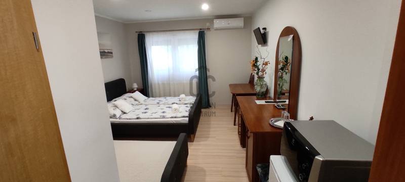 Balatonberényben kínálunk sokrétűen hasznosítható szálláshelyet, panziót eladásra.Az épület 2016-ban nyerte el végleges formáját, alapjaiban újult meg.A földszinten komplett étterem a szükséges kiszolgáló létesítményekkel, hűtőkamrával, valamint 2 szobás lakás és 2 apartman kapott helyet. Az emeleten 6 apartman (ebből 4 balatoni panorámás) található, mindegyik saját fürdőszobával. Az ingatlanban minden lakás, apartman külön klimatizált. (összesen 10 db)Az épület fűtése vegyestüzelésű kazánnal és gázkazánokkal (2 db) megoldott.A vételár a teljes berendezést magában foglalja.Az üzemeltetéshez szükséges összes engedély rendelkezésre áll.Az ingatlan tökéletes helyen van a hosszútávú befektetést, stabil bevételt kereső befektetőknek.Balatonberény a balatoni kerékpárút utolsó állomása Keszthely felé, a családosok kedvelt nyaralóhelye, köszönhetően a hosszú, lassan mélyülő strandjainak, csodás panorámájának.Minden szolgáltatás, szórakozási lehetőség elérhető, garantált a nyugodt kikapcsolódás. Rugalmasan megtekinthető előzetes egyeztetéssel.