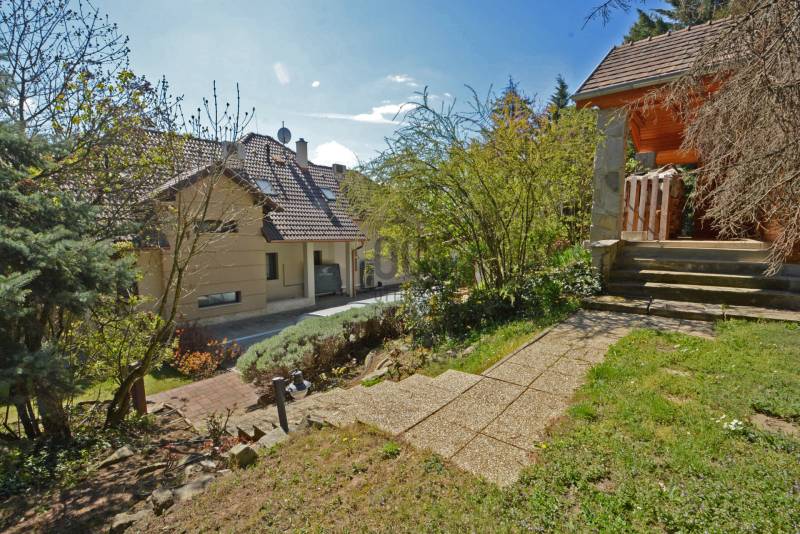 Alap adatok:- 1743 nm telekterület.- Két helyrajzi szám. ( 892+851 nm)- 2016-ban épült 3 szintes panorámás luxus családi ház, 4 lakószobával, panorámás nappalival,342 nm hasznos alapterülettel.- 60 nm-es panorámás terasz.- 4 autó részére garázs elektromos töltőfejekkel.- 6 autó részére gépkocsi beálló.- Fedett úszómedence,- 6 Kw szaldós napelem rendszer.- Hőszivattyús, elektromos, gáz és vegyes tüzelésű fűtés ki van alakítva és igény szerint kombinálható.- A világ legbarátságosabb full panorámás nyári konyhája tetővel, pultokkal raktárhelyiségekkel.- Elvehetetlen panoráma a Dunakanyarra- Egy 28 nm-es két szobás vendégház a másik helyrajzi számú telken.Verőce kis település a Duna bal partján 4160 lakossal. Budapest belvárosától a távolság 36 km légvonalban. 52 km közúton, mely gépkocsival kb. 1 óra. Vonattal Budapest Nyugati Pályaudvarról Verőce vasútállomásig Z70-es zónázó vonattal 31 perc.A telkek a település központjától 50 méterre, a vasútállomástól 200 méterre, a Duna partján lévő sétánytól 250 méterre, a kezdődő domboldalon helyezkednek el. Teraszos kialakítással különülnek el egymástól. Az alsó telek talajfeltöltésének köszönhetően mindkét ingatlan kertjéből örök panoráma nyílik a Dunakanyarra és a szemközti Pilis hegyvonulatára.Két telek, két helyrajzi szám, két utcai kapu, két külön közmű bekötés. Dologösszességben akarjuk értékesíteni a két telket.Az alsó telek 892 nm-es, a feltöltésnek köszönhető nagyrészt sík területekkel rendelkezik, rajta 3 szintes, szintenként 100 nm alapterületű családi házzal, melynek építését 2015 ben kezdték, a használatba vételi engedélyét 2019-ben adták ki.A földszinten a fűtött garázsfeljárón keresztül egy sík gépkocsibeálló mögött közel 60 nm -es, négy gépkocsi tárolására alkalmas garázs helyezkedik el, benne elektromos autók gyorstöltésére alkalmas fejegységgel. Mögötte 15 nm-es bortároló található. A földszinti folyosóról nyílik egy 10 nm-es helyiség, ahol a szauna előkészítés és egy zuhanyzó kap helyet. A szauna ezidáig nem került beépítésre, jelenleg raktárként funkcionál. A földszinten még egy különálló wc is ki lett a alakítva, ami az előszobából nyílik.Az első emeletre lépcsősor vezet, ahol egy 5.5 méteres belmagassággal rendelkező, hatalmas üvegablakokkal a Dunakanyarra panorámás nappali szoba található, ahonnan a szintén Dunai panorámás, közel 60 nm alapterületű teraszra juthatunk ki. A terasszal egy szintben van a gondozott pázsitos kert, ami egy támfallal különül el az alatta lévő telektől, a rajta lévő ház fölé emelve azt. A kertből szintén korlátlan a panoráma.A nappali szobából nyíló konyha és kamra a földszint és az első emeleti előkert közti rézsűs virágoskertre néző ablakokkal rendelkezik. Az első emeleti nappaliból nyílik az a háztartási helység, ahol a mosógépek és az épület gázcirkóval valamint hőszivattyúval kombinált fűtés és meleg víz rendszerének gépészete található.A nappaliból nyílik a szülői háló, melynek saját fürdőszobájában pezsgőfürdős kád, dupla mosdókagyló és wc kap helyet.Az első emeleti terasz és kert szintjén található az épület mellett jobb oldalt elterülő telekrész, ahol egy fedett kültéri konyha, és a hozzá tartozó 15 nm-es külső tároló kap helyet. Az oldalfalak nélküli konyhából elvehetetlen panoráma nyílik a Dunára és a környező hegyekre. A külső konyha hátsó oldalfalát a mellette lévő telek szinteltolását tartó támfal adja. A külső konyha tetőszerkezetén találhatóak az a napelem rendszer, mely a szaldós áram visszatáplálási rendszer gerincét alkotja.Az épület első emeletének szintjén a ház mögötti kertrészen van kialakítva az a csúsztatható boltíves polikarbonát tetővel ellátott kültéri medence, mely ellenáramoltatóval, fűtő berendezéssel és nagy teljesítményű vízforgató és homok alapú szűrőberendezéssel van ellátva. A medence melletti kültéri zuhanyzó alatt található a medence gépészeti egysége, míg a belépő vízrendszer központja a medence melletti tároló épületben helyezkedik el. A medence mellől indul az a széles lépcsősor, mely a fölötte lévő telekre vezet, mely ettől a szinttől egy támfallal különül el.A ház harmadik szintjén a nappalival egy légtérben, onnan a nappali ablakain keresztül a Dunakanyarra panorámás felső galéria kap helyet, ahonnan a harmadik szint három lakószobája érhető el. A ház jobb felében lévő két különálló szobához egy zuhanyzós fürdőszoba tartozik, míg a ház bal oldali részén lévő nagyobb hálószoba önálló zuhanyzós fürdőszobával rendelkezik.Az épület elektromos redőnyökkel szerelt. A fűtést és a meleg víz ellátást gáz cirkó és hőcserélős fűtőberendezés kombinált használatával lehet megoldani, mely lehetőséget biztosít arra, hogy az éves gázhasználatot a támogatott lakossági mennyiség alatt lehessen tartani. A szaldós napelem rendszernek köszönhetően elektromos gépjárművek töltése és a hőcserélős fűtési rendszer üzemeltetése mellett is a lakossági támogatott szint határértéke alatt tudják tartani a fogyasztást a jelenlegi tulajdonosok.A felső 851 nm-es, enyhén emelkedő telek. Rajta 28 nm alapterületű két hálószobás, zuhanyzós fürdőszobával, wc-vel és külső tárolóval ellátott vendégház áll, mely jelenleg irodaként funkcionál. Fűtése gáz konvektor és elektromos padlófűtés, de újonnan épült vegyes tüzelésű kémény már rendelkezésre áll, akár kályhának akár kandallónak. A telek ősfás, egyik részén gondozott, futtatott szőlőtőkékkel. Az alatta lévő telektől egy támfal választja el, melyben beépítet