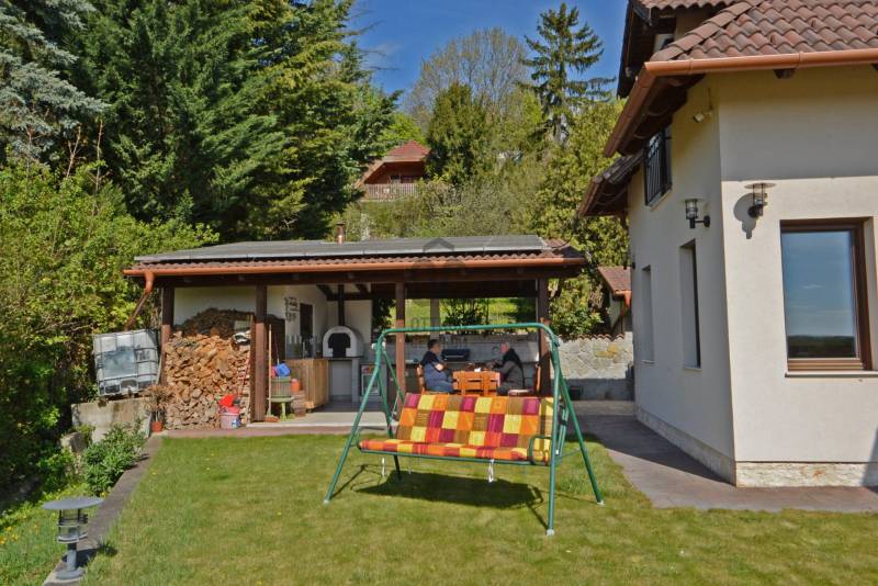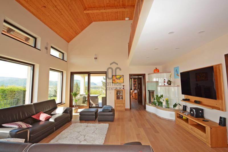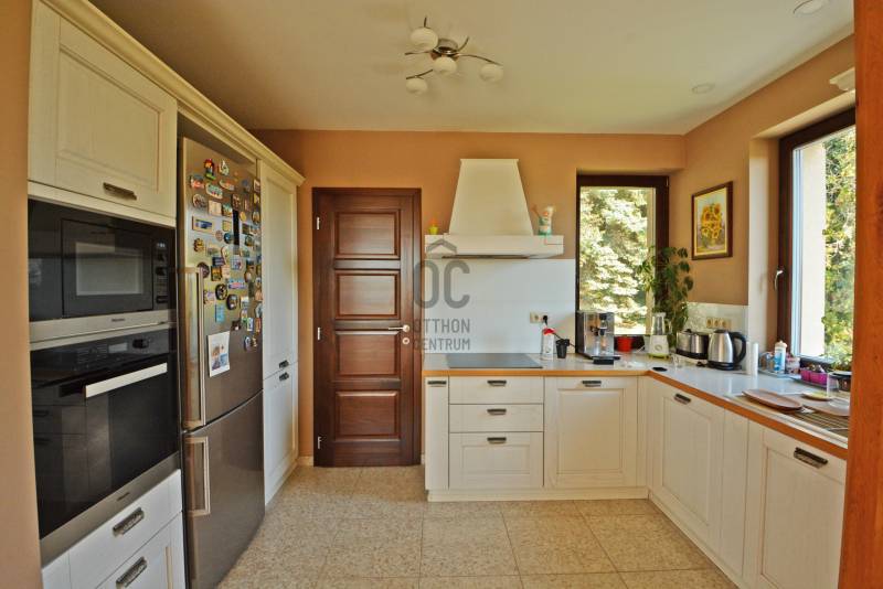 Alap adatok:- 1743 nm telekterület.- Két helyrajzi szám. ( 892+851 nm)- 2016-ban épült 3 szintes panorámás luxus családi ház, 4 lakószobával, panorámás nappalival,342 nm hasznos alapterülettel.- 60 nm-es panorámás terasz.- 4 autó részére garázs elektromos töltőfejekkel.- 6 autó részére gépkocsi beálló.- Fedett úszómedence, - 6 Kw szaldós napelem rendszer.- Hőszivattyús, elektromos, gáz és vegyes tüzelésű fűtés ki van alakítva és igény szerint kombinálható.- A világ legbarátságosabb full panorámás nyári konyhája tetővel, pultokkal raktárhelyiségekkel.- Elvehetetlen panoráma a Dunakanyarra- Egy 28 nm-es két szobás vendégház a másik helyrajzi számú telken.Verőce kis település a Duna bal partján 4160 lakossal. Budapest belvárosától a távolság 36 km légvonalban. 52 km közúton, mely gépkocsival kb. 1 óra. Vonattal Budapest Nyugati Pályaudvarról Verőce vasútállomásig Z70-es zónázó vonattal 31 perc.A telkek a település központjától 50 méterre, a vasútállomástól 200 méterre, a Duna partján lévő sétánytól 250 méterre, a kezdődő domboldalon helyezkednek el. Teraszos kialakítással különülnek el egymástól. Az alsó telek talajfeltöltésének köszönhetően mindkét ingatlan kertjéből örök panoráma nyílik a Dunakanyarra és a szemközti Pilis hegyvonulatára. Két telek, két helyrajzi szám, két utcai kapu, két külön közmű bekötés. Dologösszességben akarjuk értékesíteni a két telket.Az alsó telek 892 nm-es, a feltöltésnek köszönhető nagyrészt sík területekkel rendelkezik, rajta 3 szintes, szintenként 100 nm alapterületű családi házzal, melynek építését 2015 ben kezdték, a használatba vételi engedélyét 2019-ben adták ki. A földszinten a fűtött garázsfeljárón keresztül egy sík gépkocsibeálló mögött közel 60 nm -es, négy gépkocsi tárolására alkalmas garázs helyezkedik el, benne elektromos autók gyorstöltésére alkalmas fejegységgel. Mögötte 15 nm-es bortároló található. A földszinti folyosóról nyílik egy 10 nm-es helyiség, ahol a szauna előkészítés és egy zuhanyzó kap helyet. A szauna ezidáig nem került beépítésre, jelenleg raktárként funkcionál. A földszinten még egy különálló wc is ki lett a alakítva, ami az előszobából nyílik.Az első emeletre lépcsősor vezet, ahol egy 5.5 méteres belmagassággal rendelkező, hatalmas üvegablakokkal a Dunakanyarra panorámás nappali szoba található, ahonnan a szintén Dunai panorámás, közel 60 nm alapterületű teraszra juthatunk ki. A terasszal egy szintben van a gondozott pázsitos kert, ami egy támfallal különül el az alatta lévő telektől, a rajta lévő ház fölé emelve azt. A kertből szintén korlátlan a panoráma.A nappali szobából nyíló konyha és kamra a földszint és az első emeleti előkert közti rézsűs virágoskertre néző ablakokkal rendelkezik. Az első emeleti nappaliból nyílik az a háztartási helység, ahol a mosógépek és az épület gázcirkóval valamint hőszivattyúval kombinált fűtés és meleg víz rendszerének gépészete található.A nappaliból nyílik a szülői háló, melynek saját fürdőszobájában pezsgőfürdős kád, dupla mosdókagyló és wc kap helyet.Az első emeleti terasz és kert szintjén található az épület mellett jobb oldalt elterülő telekrész, ahol egy fedett kültéri konyha, és a hozzá tartozó 15 nm-es külső tároló kap helyet. Az oldalfalak nélküli konyhából elvehetetlen panoráma nyílik a Dunára és a környező hegyekre. A külső konyha hátsó oldalfalát a mellette lévő telek szinteltolását tartó támfal adja. A külső konyha tetőszerkezetén találhatóak az a napelem rendszer, mely a szaldós áram visszatáplálási rendszer gerincét alkotja. Az épület első emeletének szintjén a ház mögötti kertrészen van kialakítva az a csúsztatható boltíves polikarbonát tetővel ellátott kültéri medence, mely ellenáramoltatóval, fűtő berendezéssel és nagy teljesítményű vízforgató és homok alapú szűrőberendezéssel van ellátva. A medence melletti kültéri zuhanyzó alatt található a medence gépészeti egysége, míg a belépő vízrendszer központja a medence melletti tároló épületben helyezkedik el. A medence mellől indul az a széles lépcsősor, mely a fölötte lévő telekre vezet, mely ettől a szinttől egy támfallal különül el.A ház harmadik szintjén a nappalival egy légtérben, onnan a nappali ablakain keresztül a Dunakanyarra panorámás felső galéria kap helyet, ahonnan a harmadik szint három lakószobája érhető el. A ház jobb felében lévő két különálló szobához egy zuhanyzós fürdőszoba tartozik, míg a ház bal oldali részén lévő nagyobb hálószoba önálló zuhanyzós fürdőszobával rendelkezik.Az épület elektromos redőnyökkel szerelt. A fűtést és a meleg víz ellátást gáz cirkó és hőcserélős fűtőberendezés kombinált használatával lehet megoldani, mely lehetőséget biztosít arra, hogy az éves gázhasználatot a támogatott lakossági mennyiség alatt lehessen tartani. A szaldós napelem rendszernek köszönhetően elektromos gépjárművek töltése és a hőcserélős fűtési rendszer üzemeltetése mellett is a lakossági támogatott szint határértéke alatt tudják tartani a fogyasztást a jelenlegi tulajdonosok.A felső 851 nm-es, enyhén emelkedő telek. Rajta 28 nm alapterületű két hálószobás, zuhanyzós fürdőszobával, wc-vel és külső tárolóval ellátott vendégház áll, mely jelenleg irodaként funkcionál. Fűtése gáz konvektor és elektromos padlófűtés, de újonnan épült vegyes tüzelésű kémény már rendelkezésre áll, akár kályhának akár kandallónak. A telek ősfás, egyik részén gondozott, futtatott szőlőtőkékkel. Az alatta lévő telektől egy támfal választja el, melyben beép
